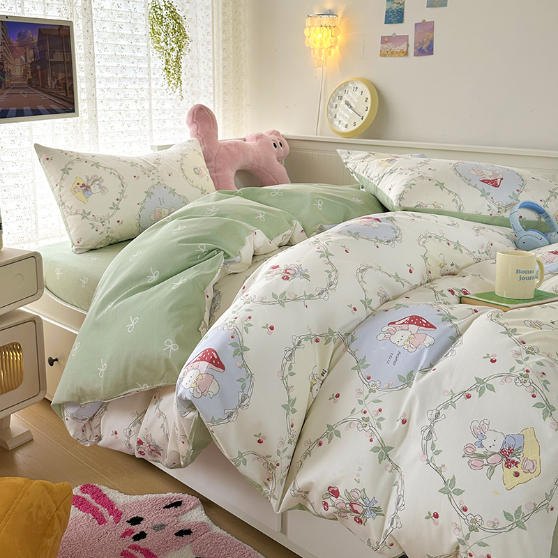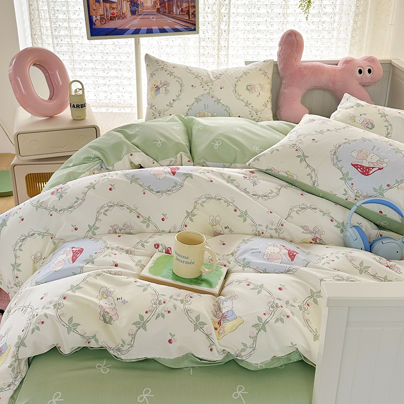 富瑞阁 2024爆款13070全棉小清新印花四件套三件套 春游泡泡