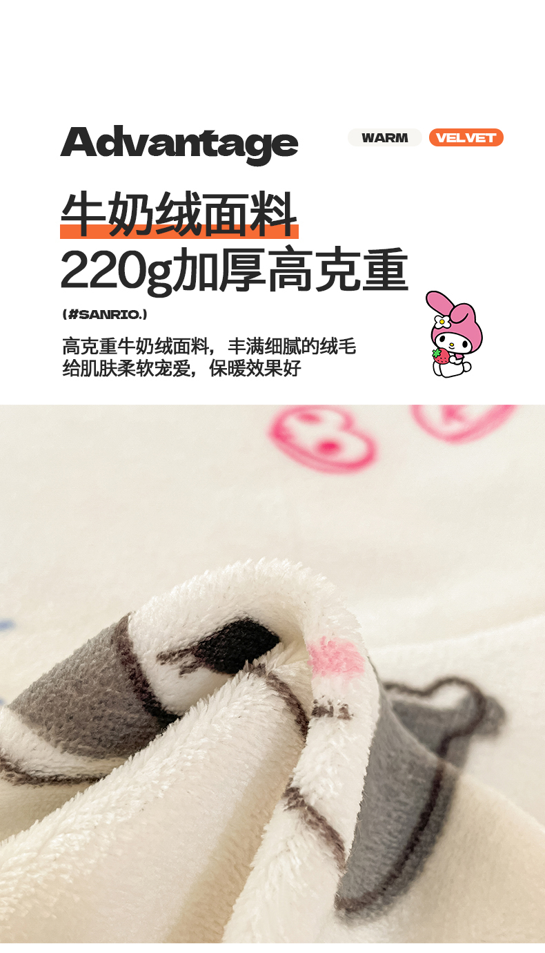 当前位置: 91家纺网 > 商品网购 > 床品套件 > 四件套 > 牛奶绒四件套 > 桃子家居 2024新款三丽鸥卡通加厚高克重200克牛奶绒系列四件套 绒三丽鸥-可爱小小库洛米