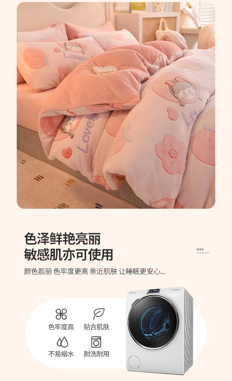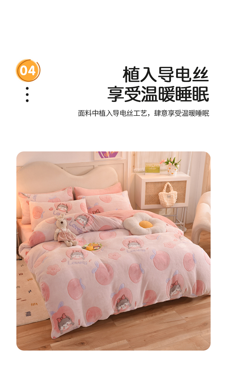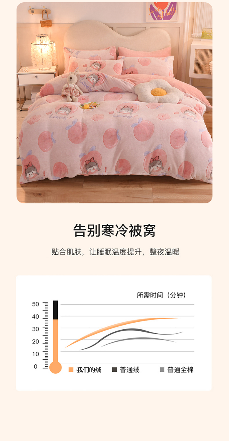 当前位置: 91家纺网 > 商品网购 > 床品套件 > 四件套 > 其它四件套 > 慕梵家居 2024新款雪花绒卡通四件套 桃子少女