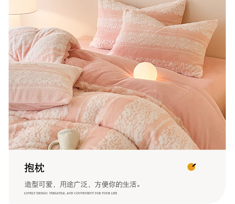 商品名称:金爱家 2024新品全消光A类纯色獭兔毛绒立体牛奶绒兔毛雕花350克四件套 兔毛百合花粉色