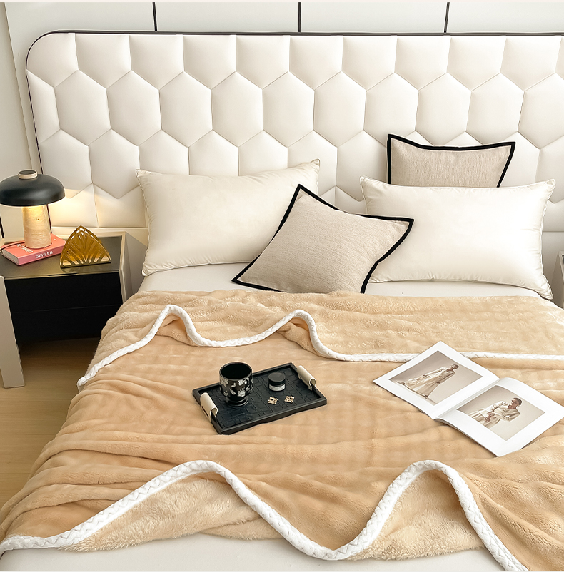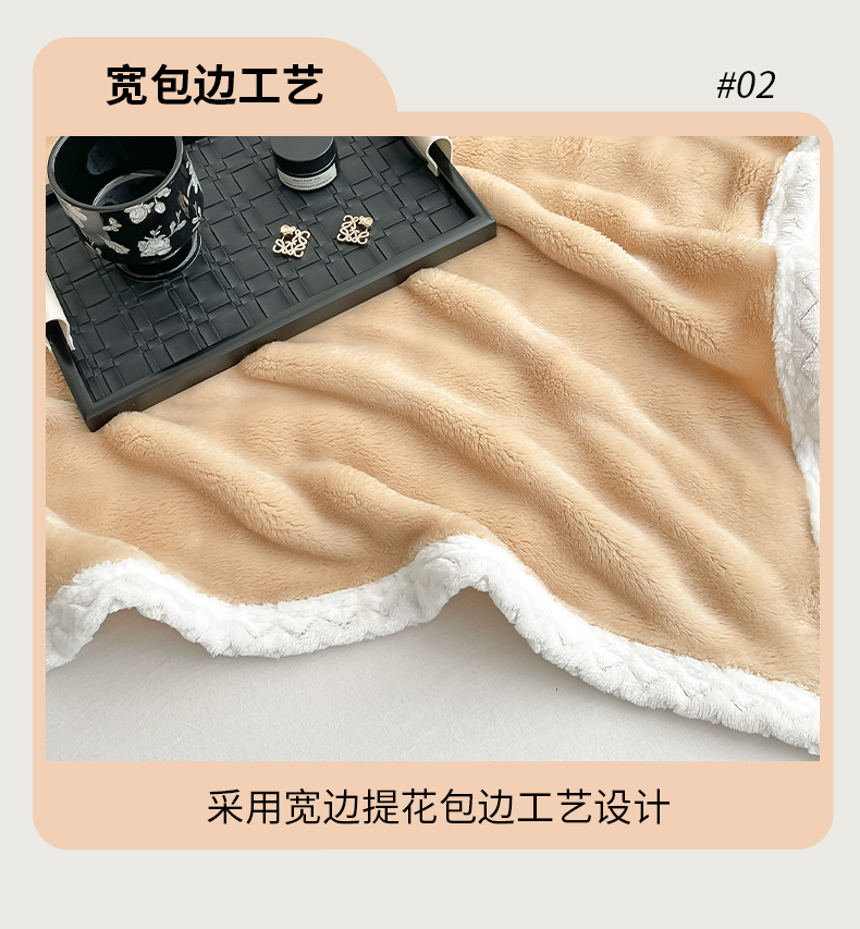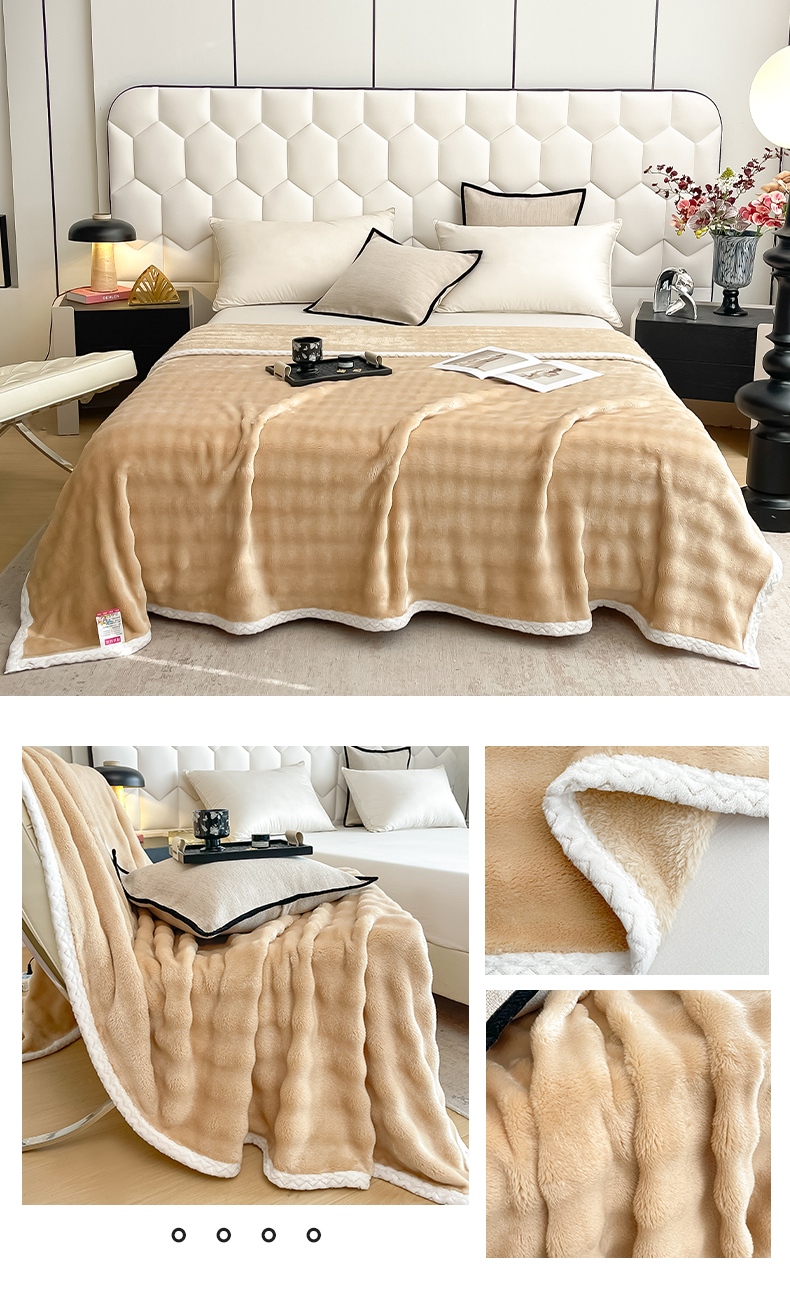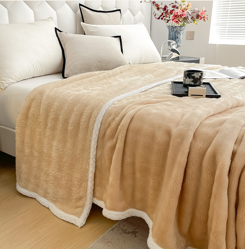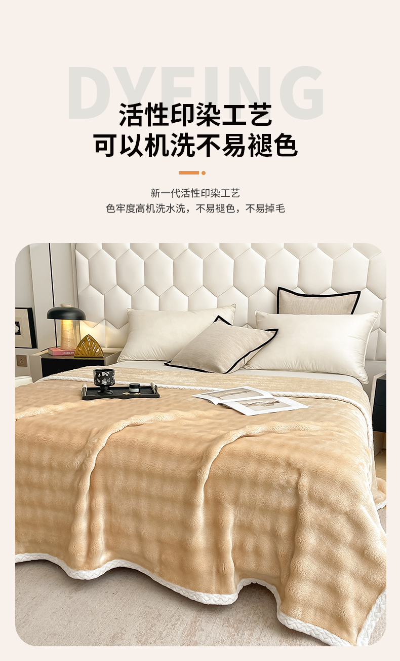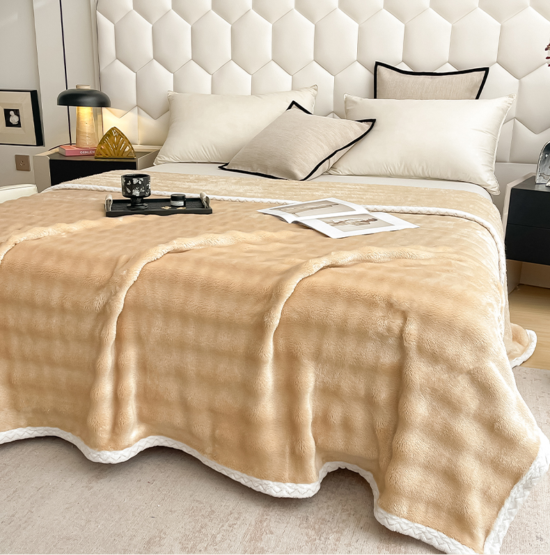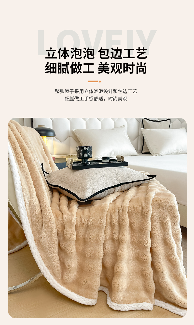 丹本家纺 2025新款仿兔毛泡泡绒牛奶绒毛毯盖毯包边毛毯 驼色