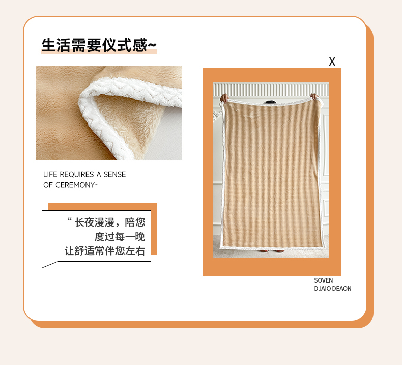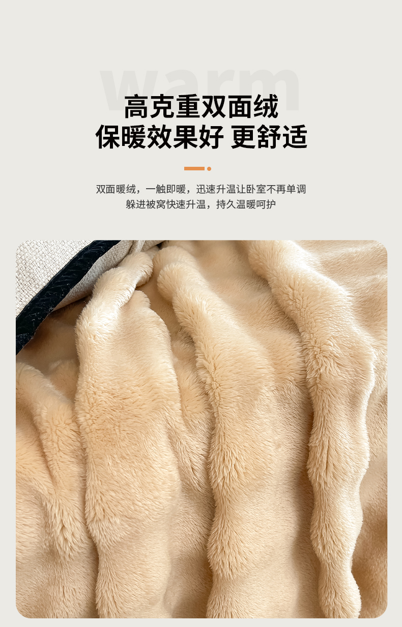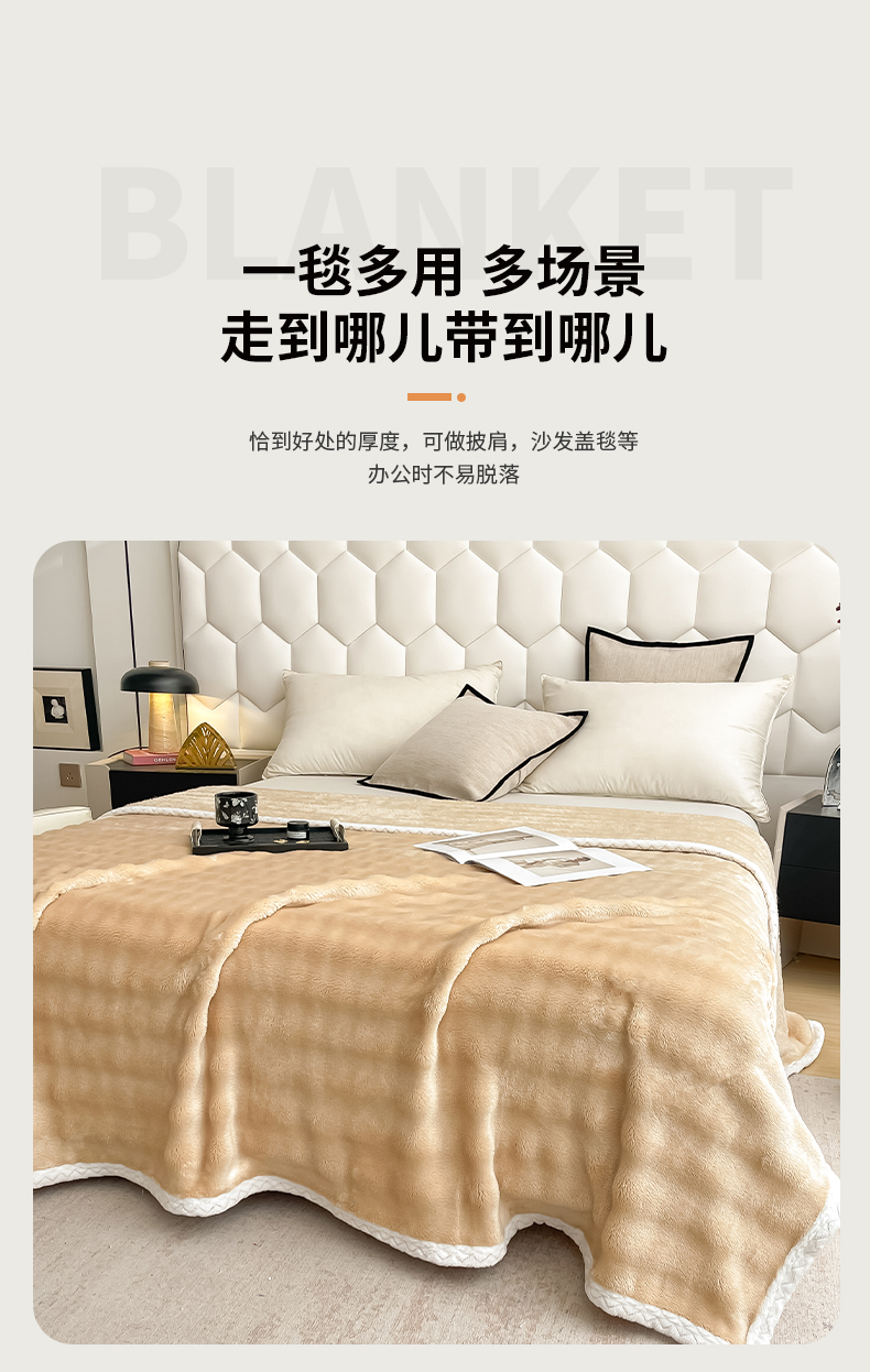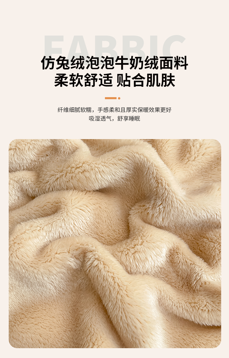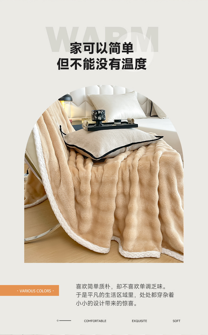 商品名称:丹本家纺 2025新款仿兔毛泡泡绒牛奶绒毛毯盖毯包边毛毯 驼色