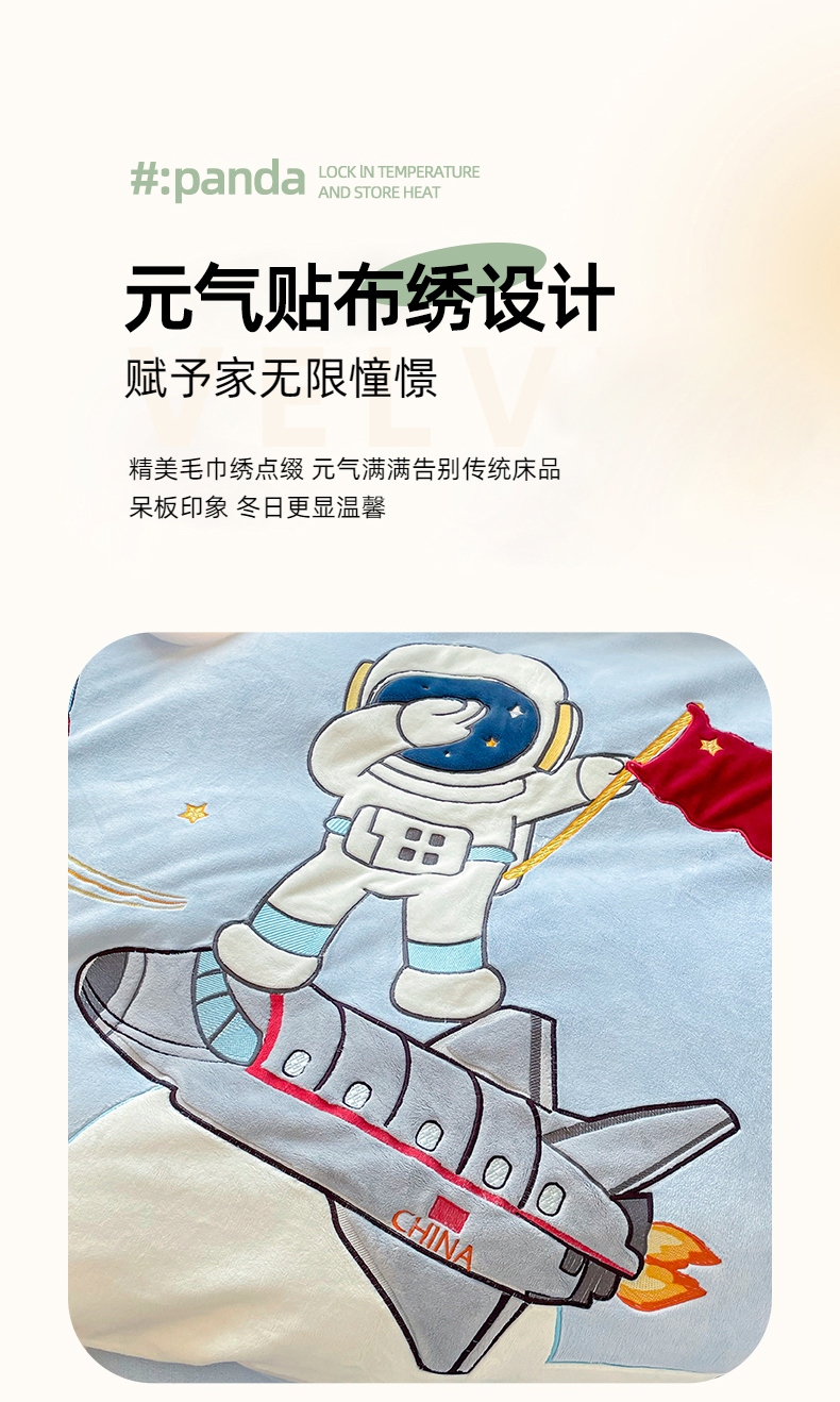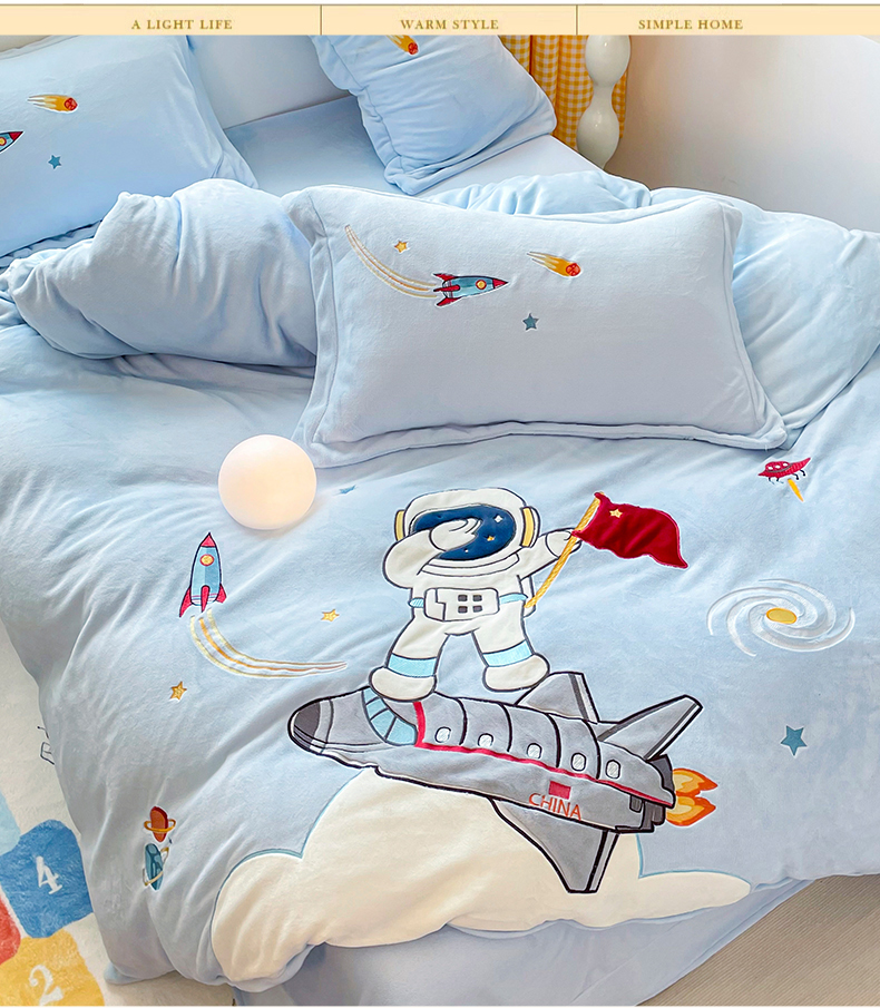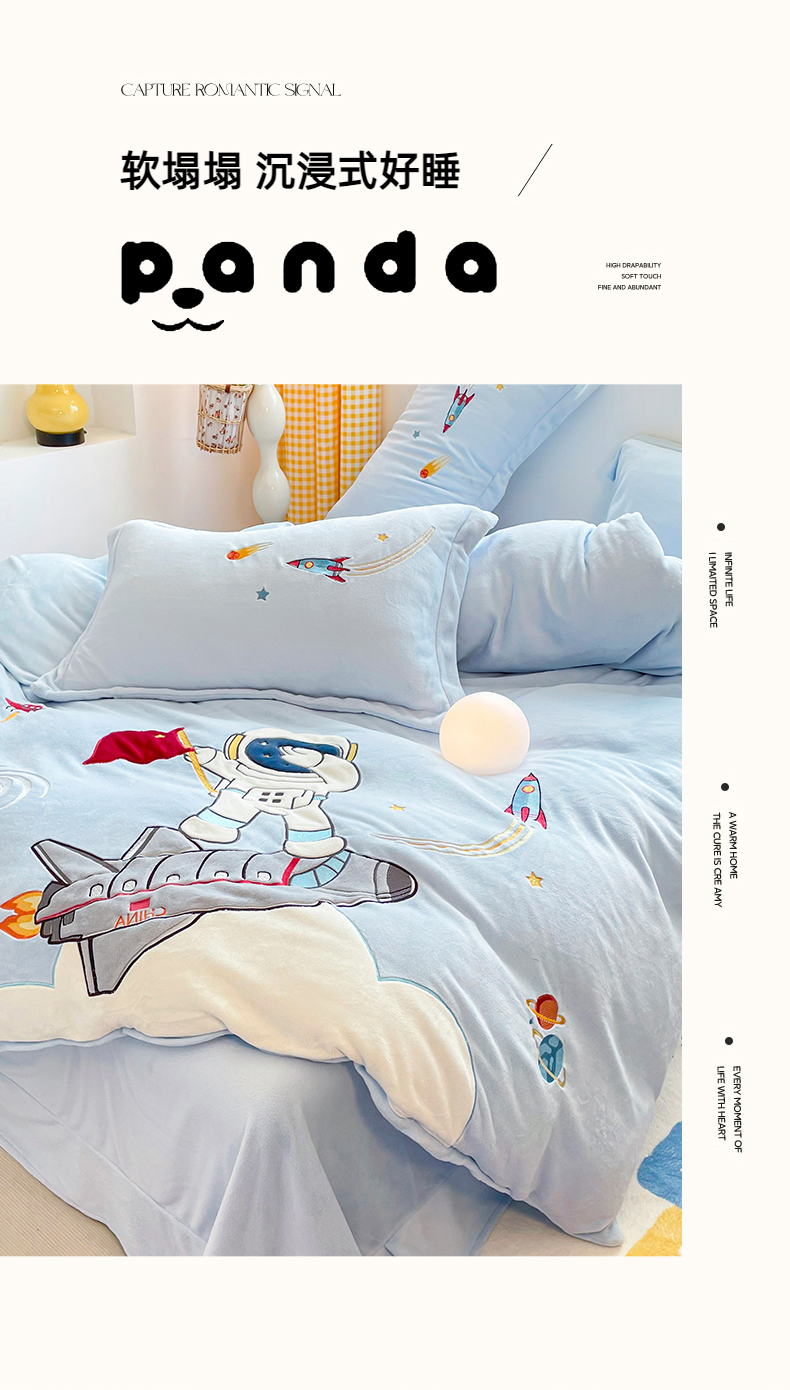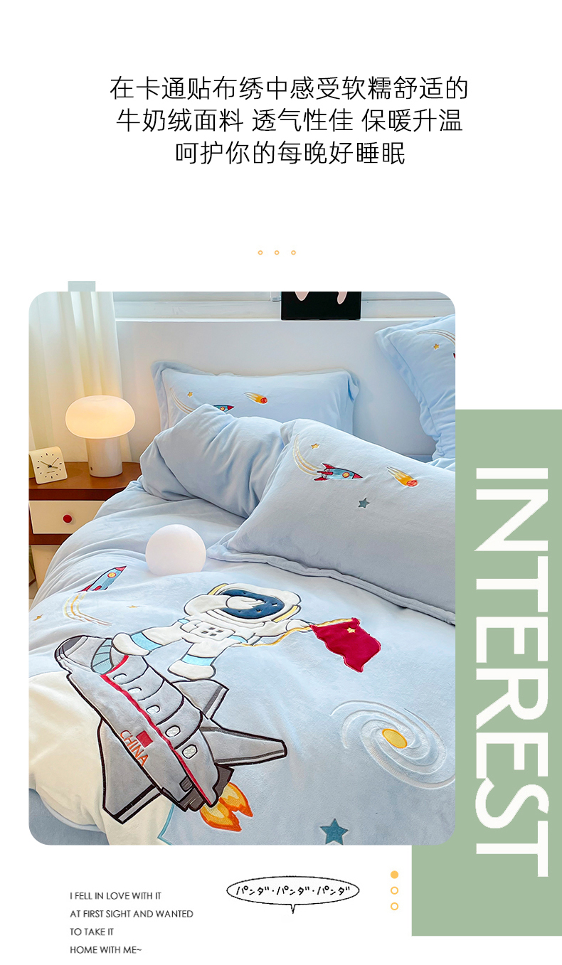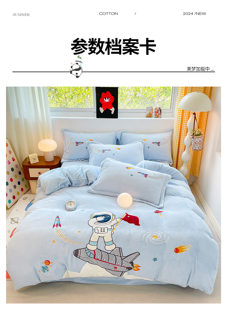 商品名称:金绣美居 2025新款牛奶绒毛绒贴布绣花保暖四件套-探险家 探险家-兰