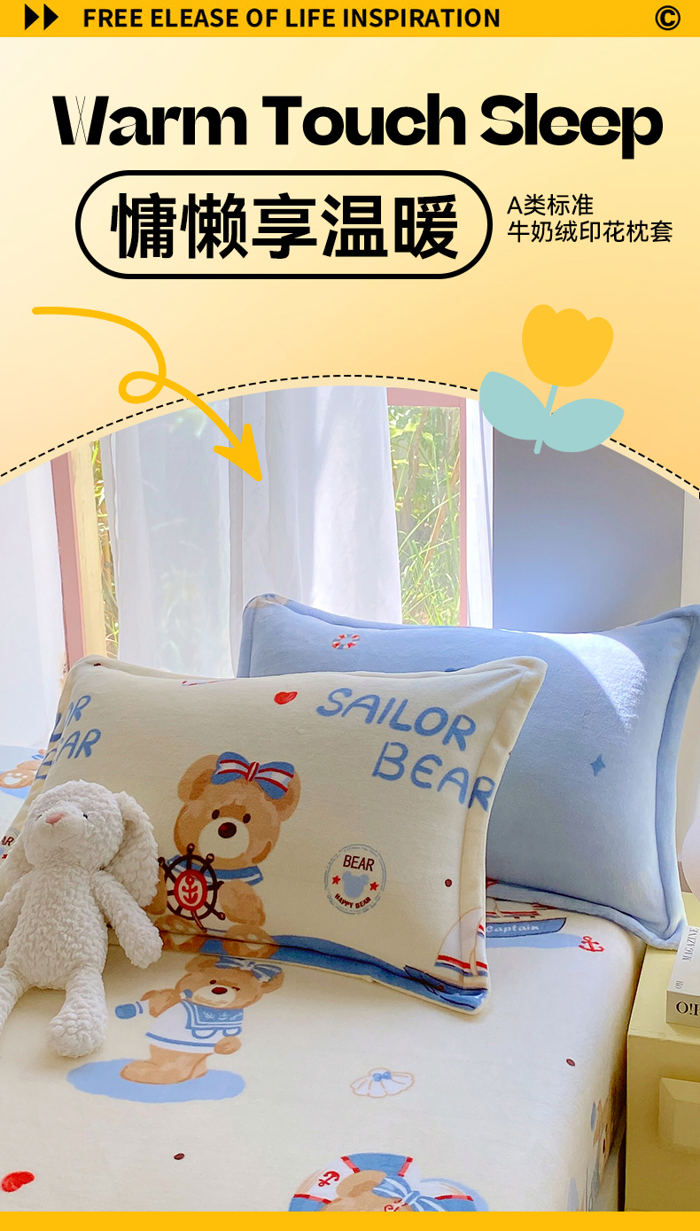 凯儿家纺 2024新款A类牛奶绒印花枕套 梦想帆船