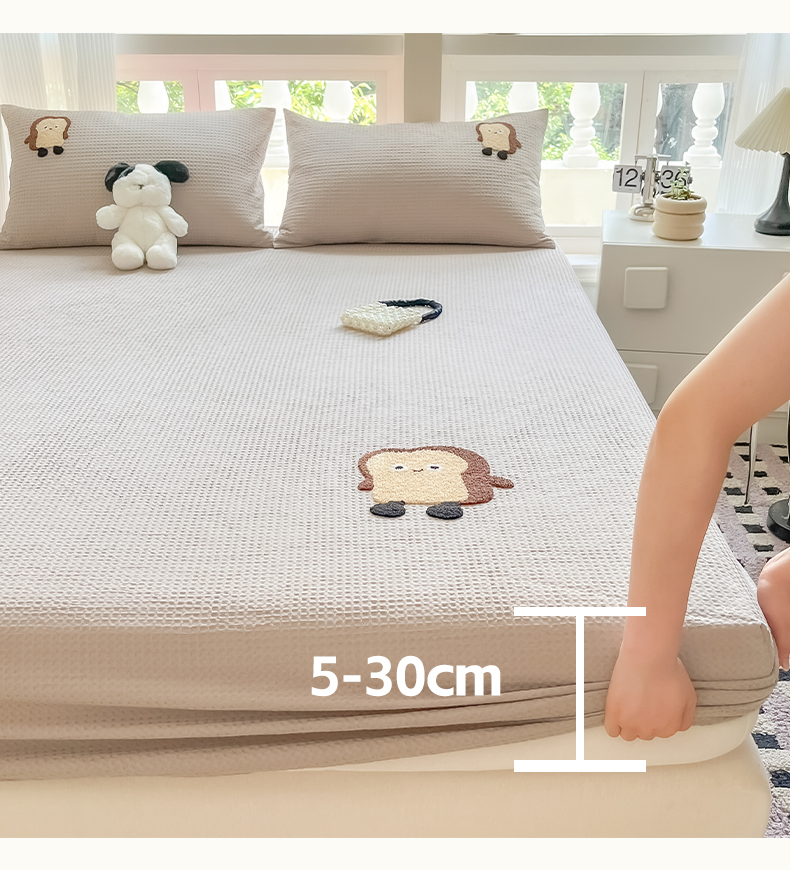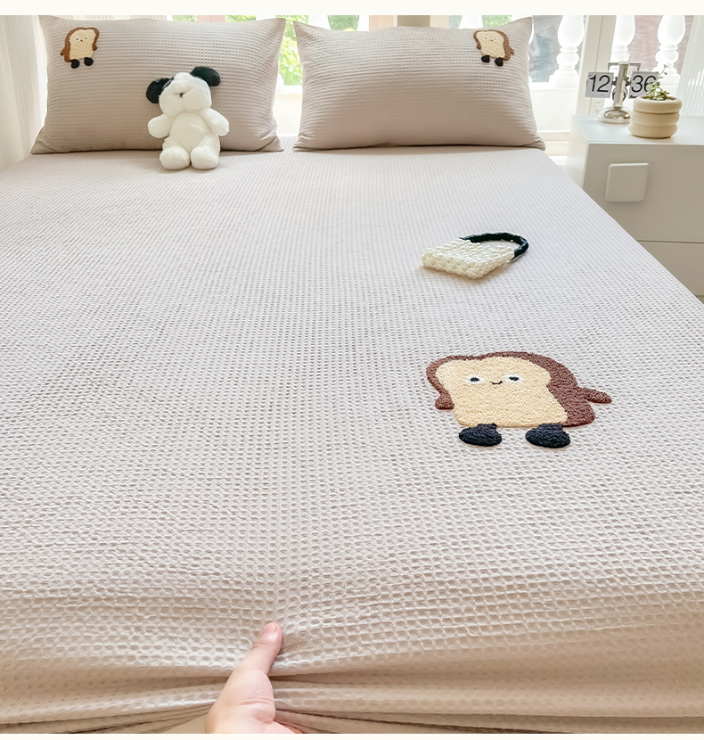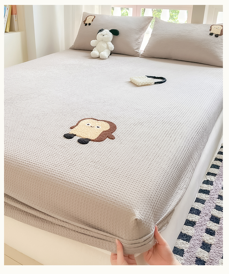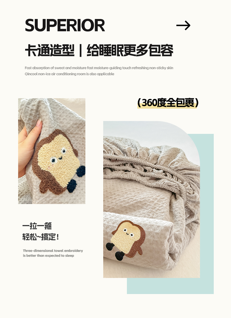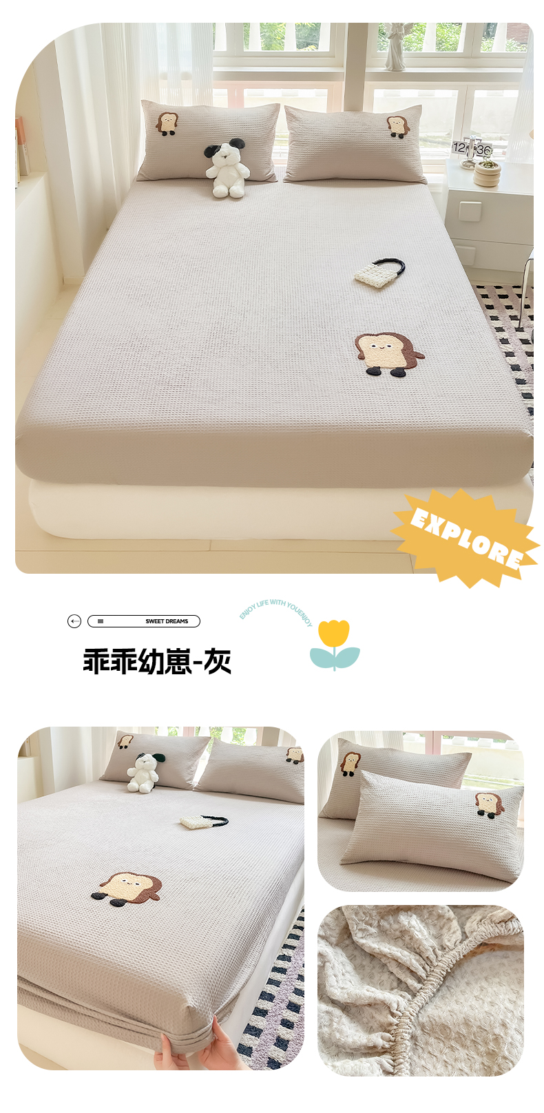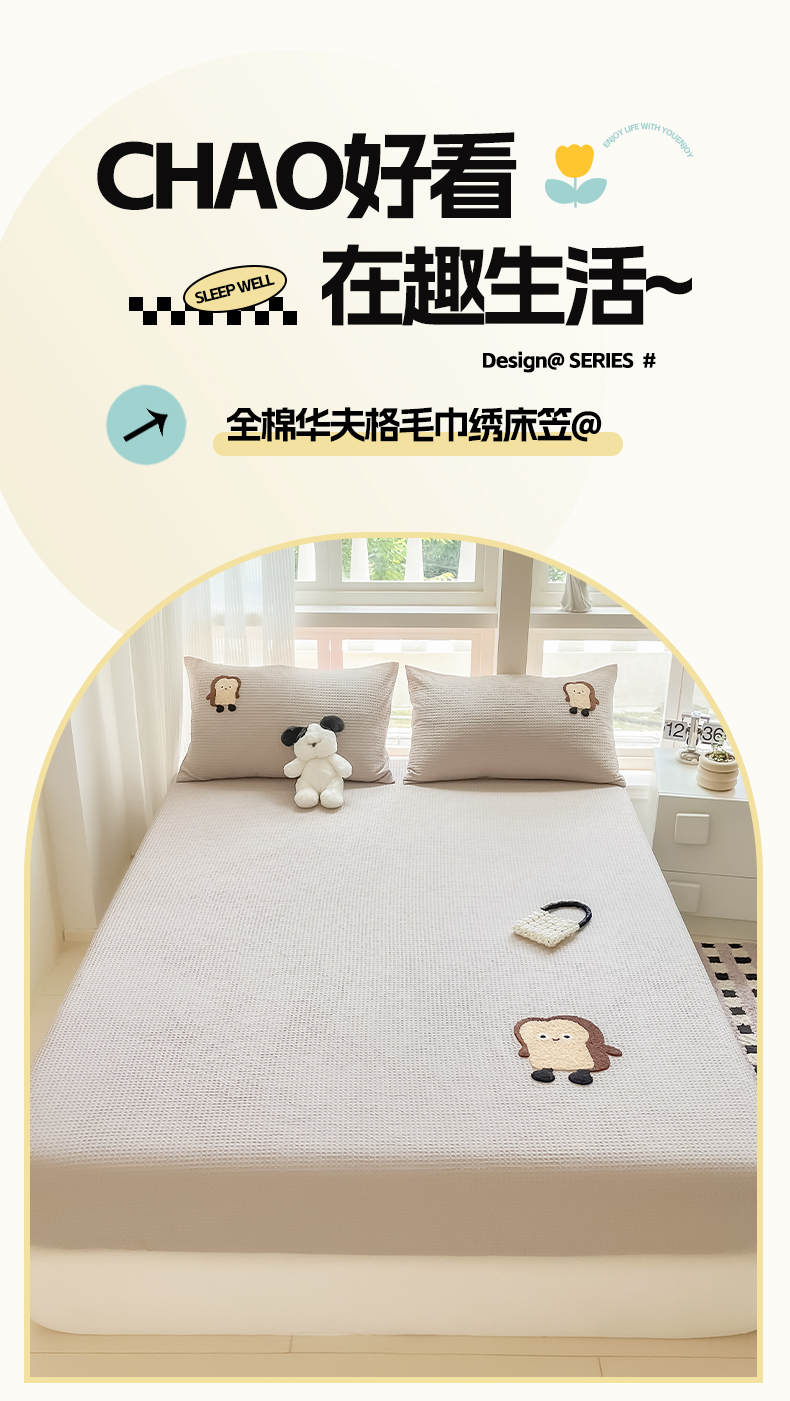 居眠 2024新款全棉华夫格毛巾绣床笠 乖乖幼崽-灰