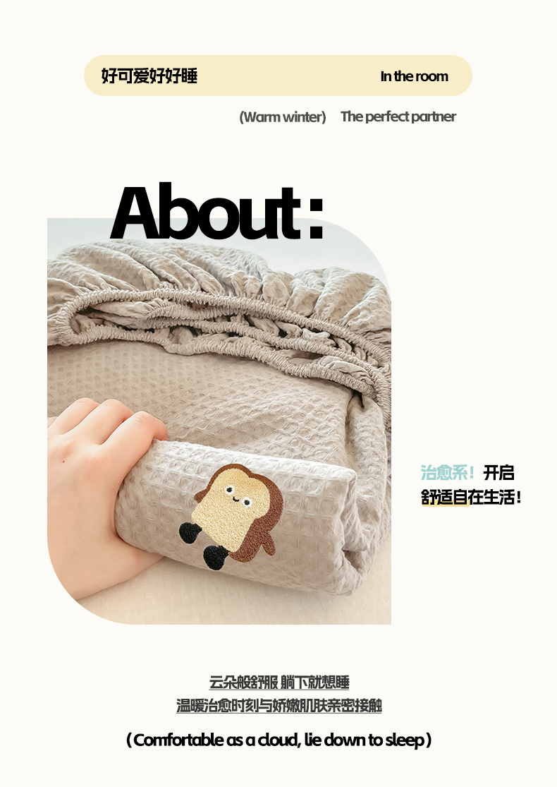 商品名称:居眠 2024新款全棉华夫格毛巾绣床笠 乖乖幼崽-灰