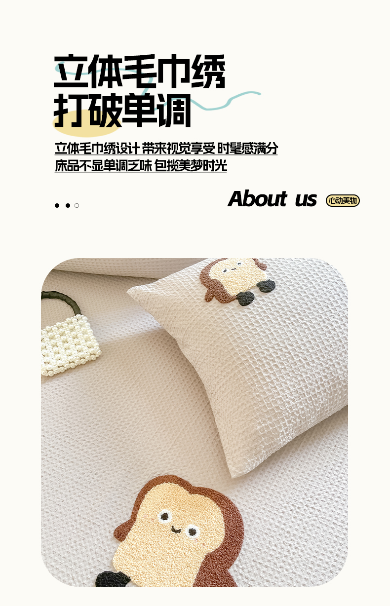 (总)居眠 2025新款全棉纯棉云感皱皱纱毛巾绣床单,白胡子狗狗,波点甜甜圈,大象先生,蝴蝶猫咪,腊肠樱桃,三只小可爱,圣诞树,兔兔小姐,外星小鸟,小象汽车,组合图仅做展示