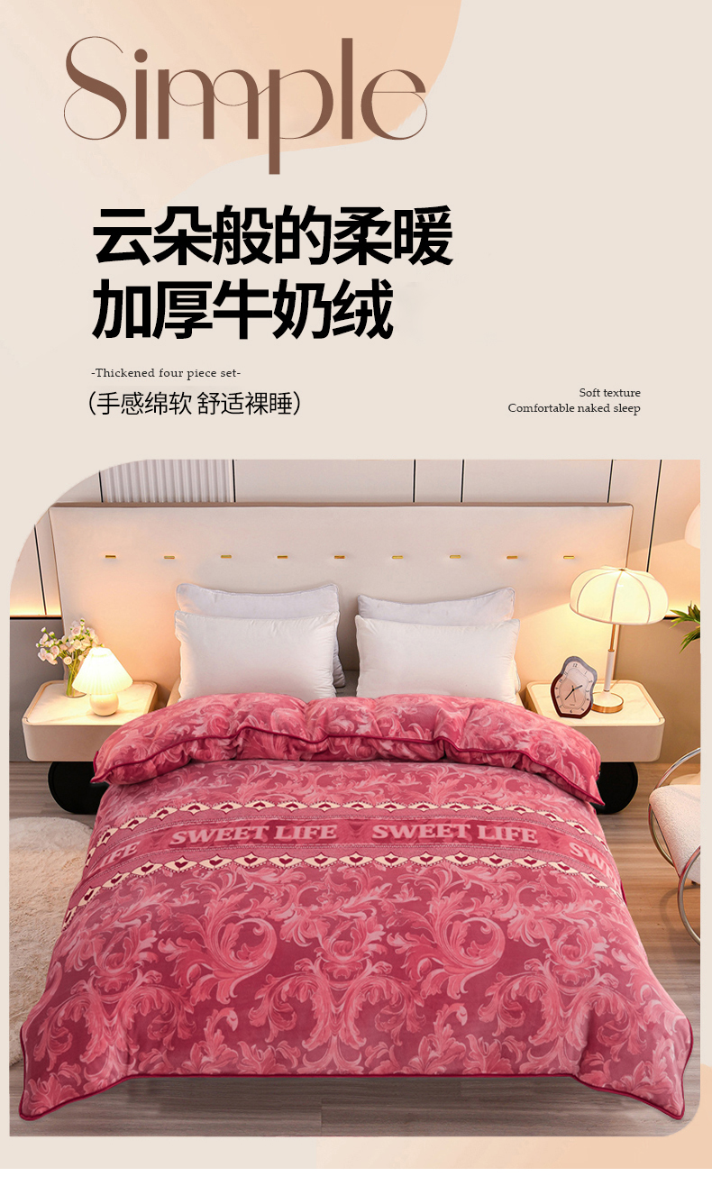 (总)眠多宝 2025新款8-9斤高克重牛奶绒四件套法莱绒水晶绒金貂绒抖音快手直播热款,爱心箭,爱意满满,草莓洛米,春暖花开,凤羽惊鸿,荷塘月色,花园小兔,金桂飘香,金麦穗,金枝玉叶,蓝大格,绿野仙踪,你好小黄鸭,暖暖时光,翩翩起舞,时尚斑马,爱心小熊,春意盎然,赫本风,红颜,极简主义,金玉满堂,乐享富贵,青叶飘逸,幸运树