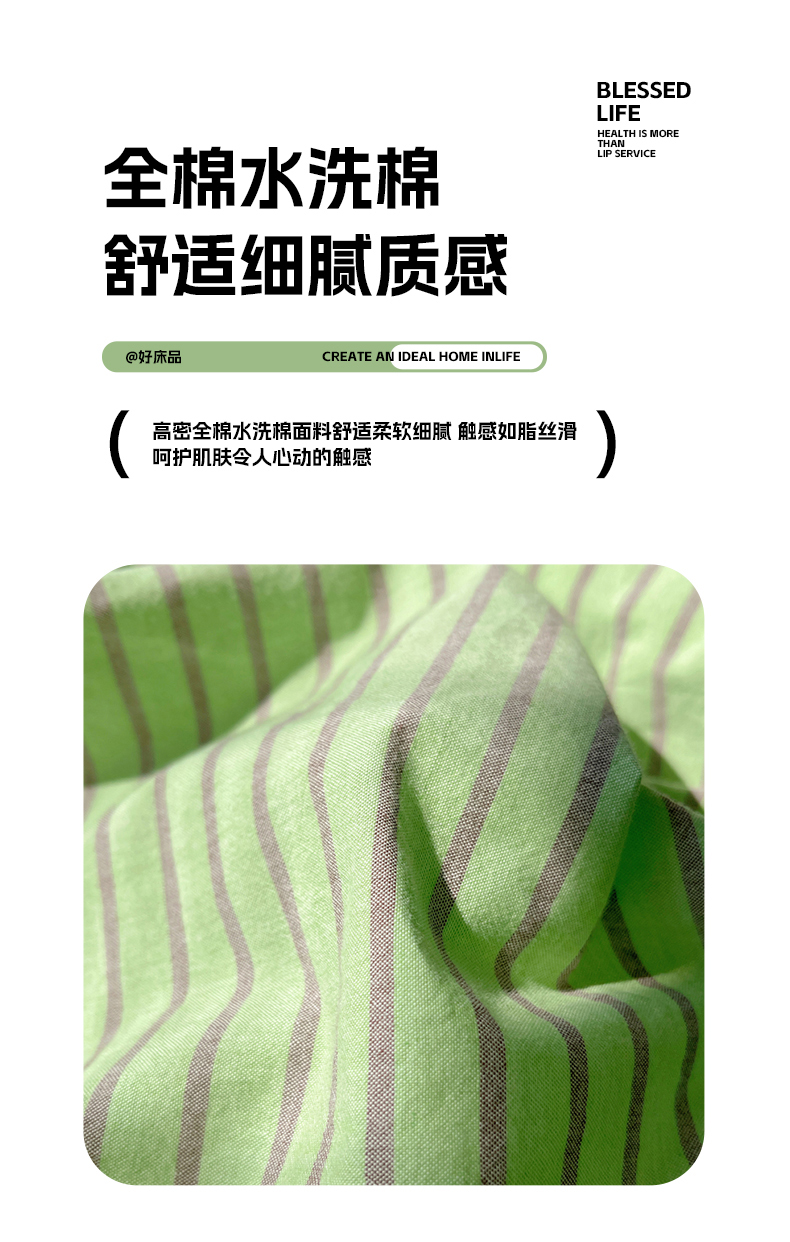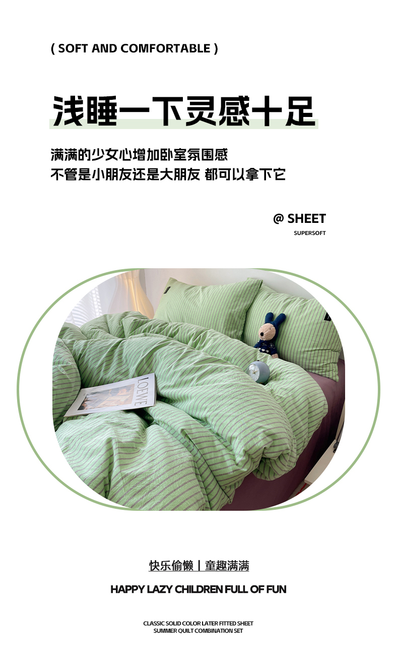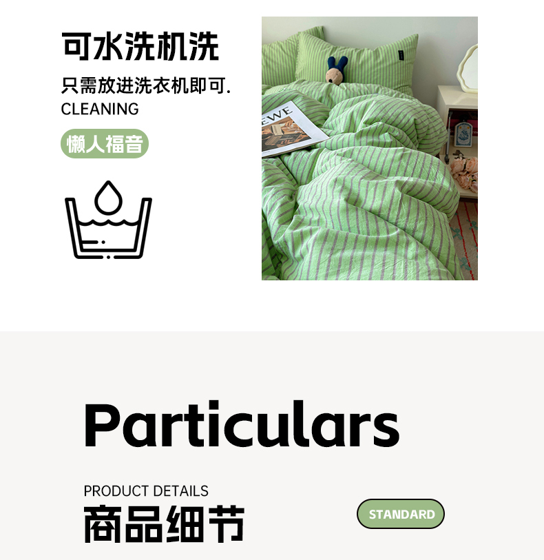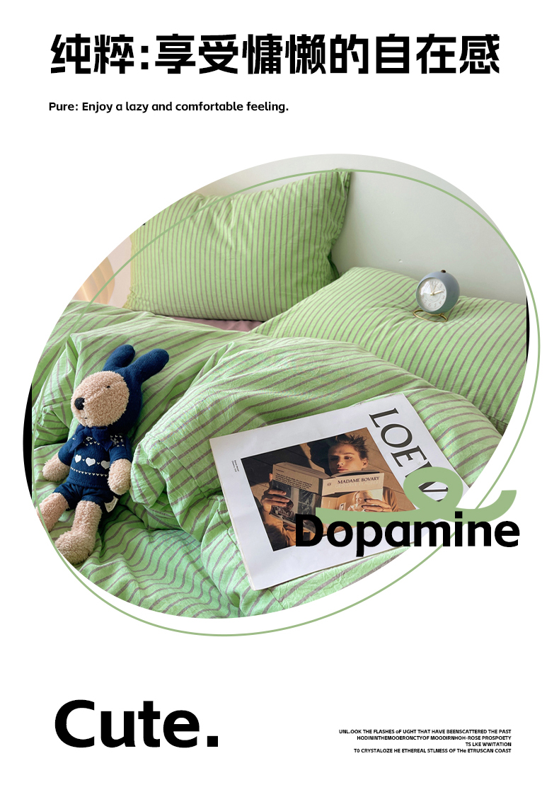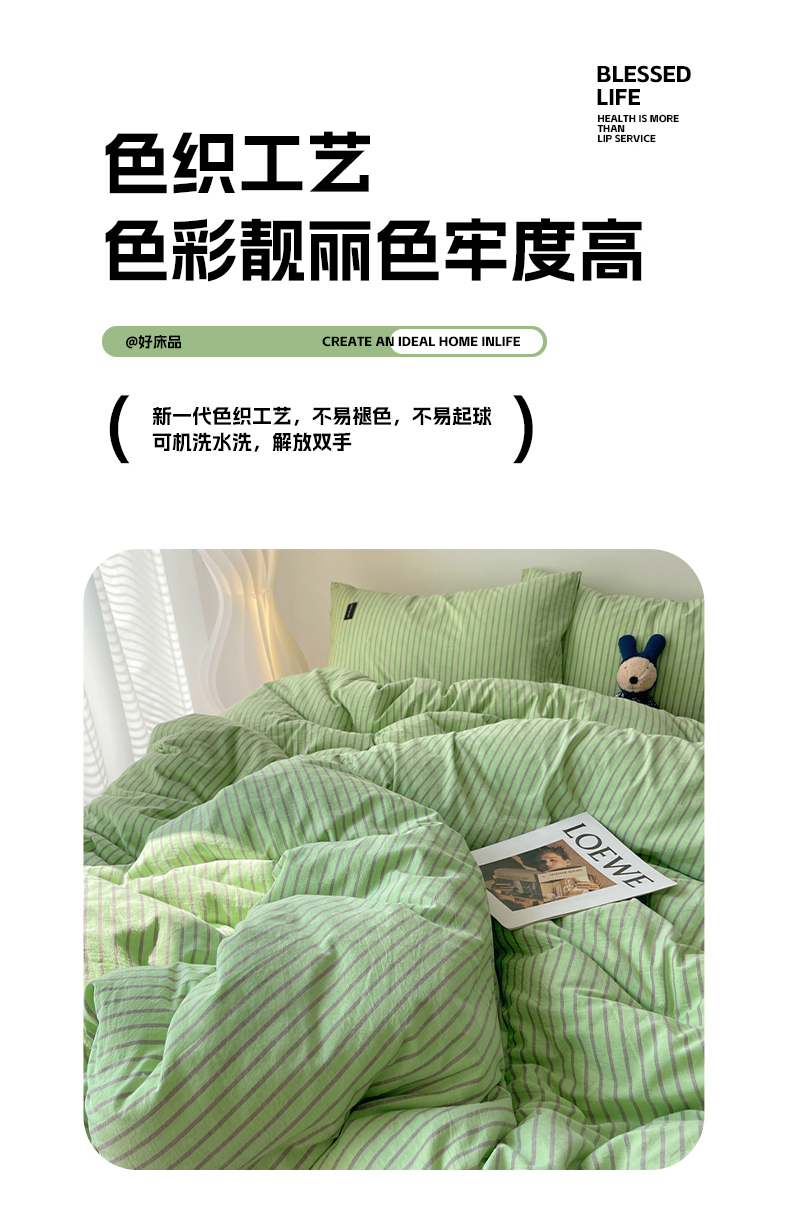 商品名称:呗旺鹿 2024新款A类全棉色织水洗棉马卡龙系列四件套 可乐绿紫