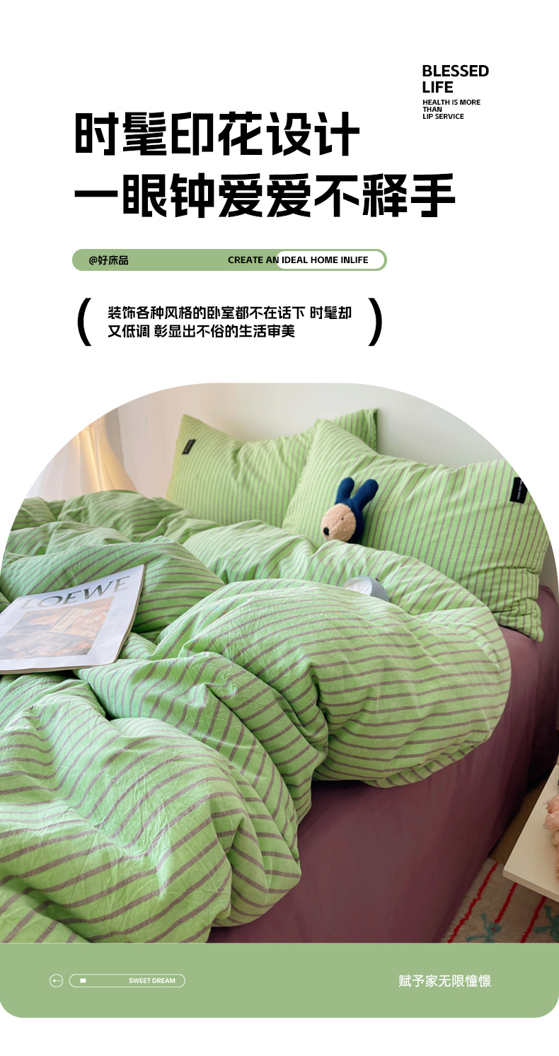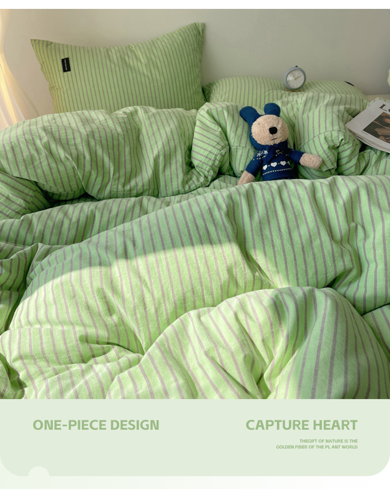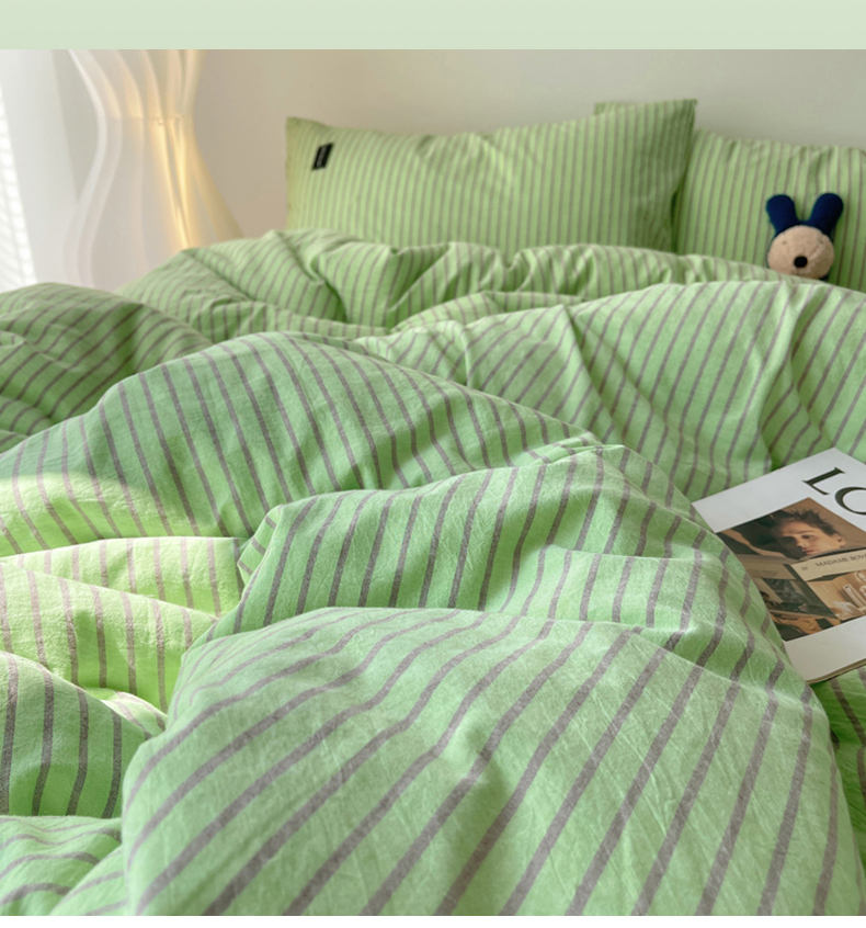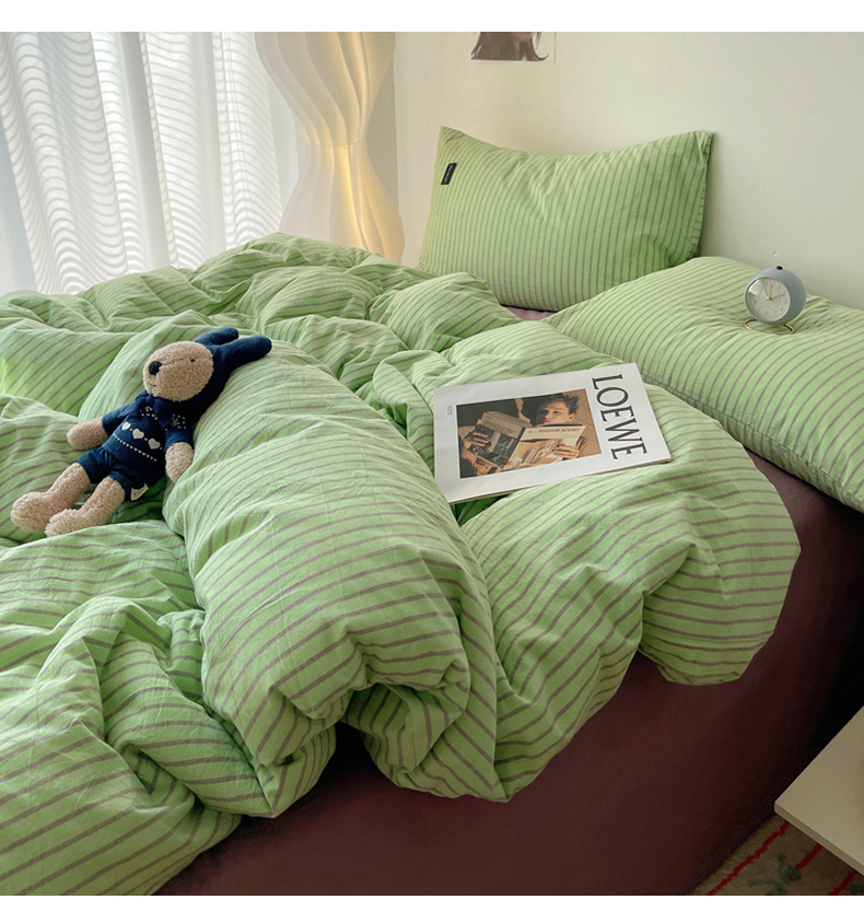 呗旺鹿 2024新款A类全棉色织水洗棉马卡龙系列四件套 可乐绿紫