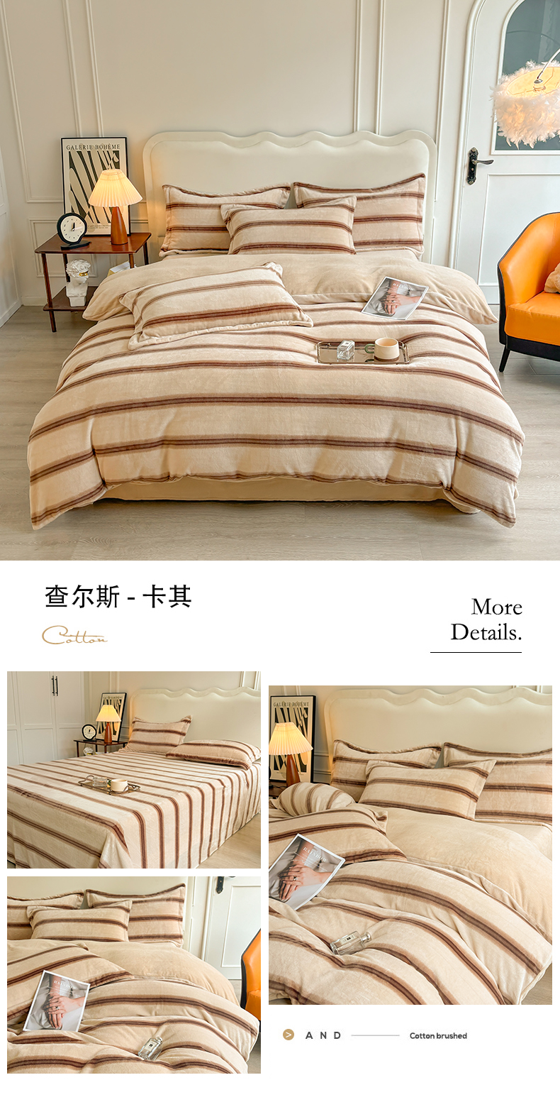 (总)菡宝 2025新款简约良品风牛奶绒四件套-查尔斯系列 支持定做定制尺寸,查尔斯-灰,查尔斯-卡其,卡伦