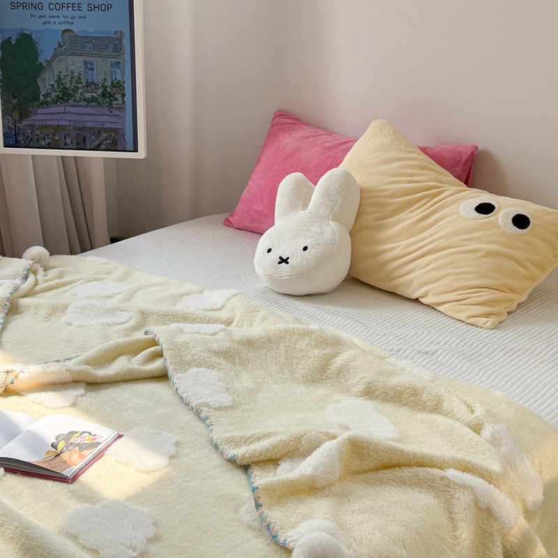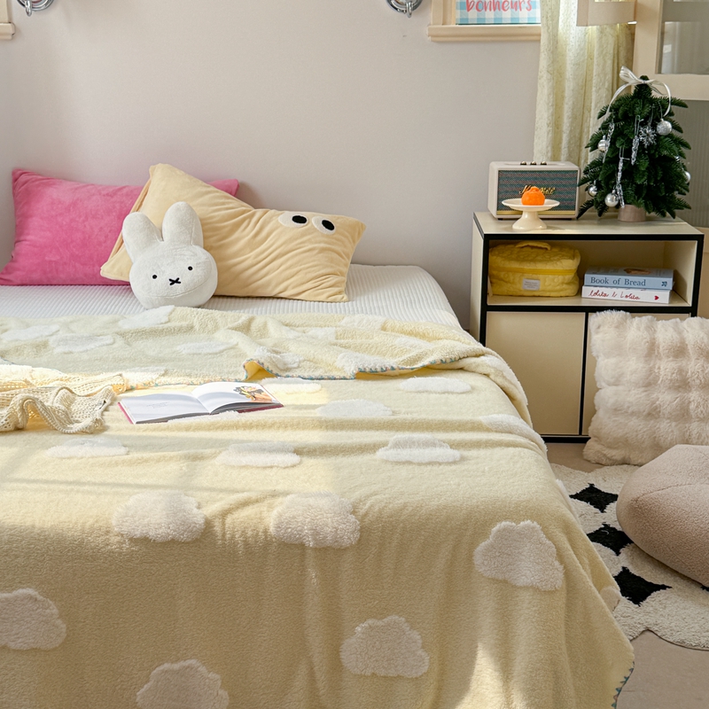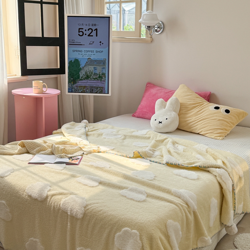 柚子YOUTH 2024新款毛球款云柔提花双面毯 黄底云朵