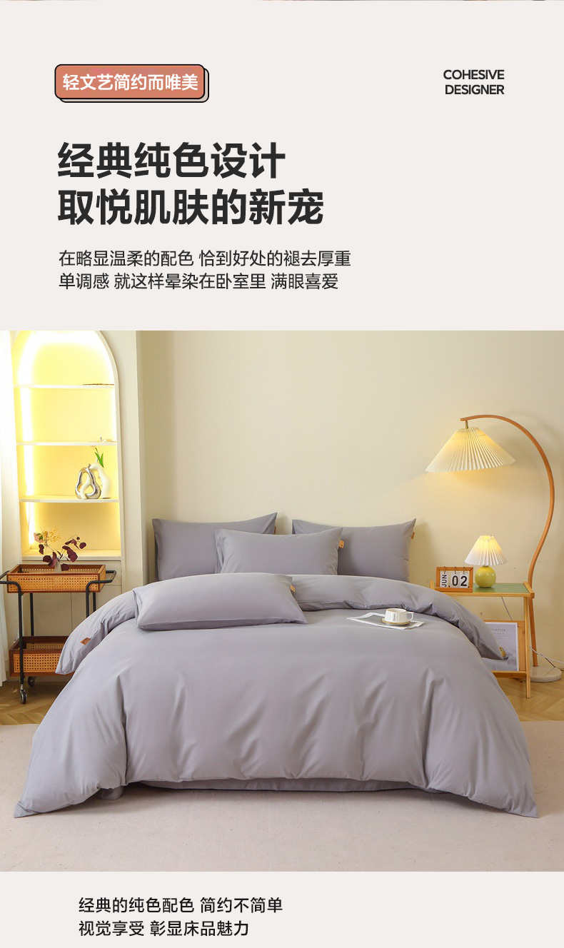 当前位置: 91家纺网 > 商品网购 > 床品套件 > 四件套 > 全棉普通四件套 > 晶缦家纺 2024新款全棉13376纯色喷气全棉磨毛四件套 暖芸馨-浅青灰