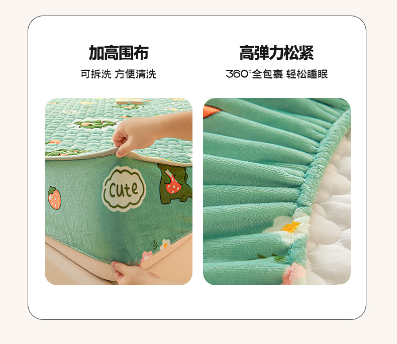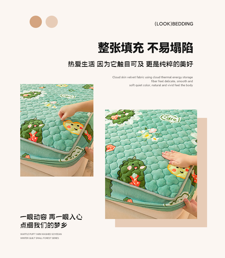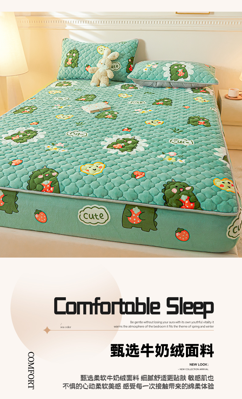 (总)卡伦家纺 2025新款A类牛奶绒夹棉加厚床垫单人双人床垫保护垫,爱的印记,爱心熊,安妮宝贝,宝石蓝,缤纷小可爱,草莓之恋,呆萌恐龙,高级灰,高雅紫,红豆沙,花间蘑力,花开一夏,花之谷,金叶飘香,开心乐园,梦想创造家,抹茶绿,南瓜灰灰,南瓜派,青春曲调,轻羽飞扬,甜蜜爱心,甜心小熊,香槟金,心相印,星幻恐龙,星梦露,熊熊世界,樱桃花语,云端漫步