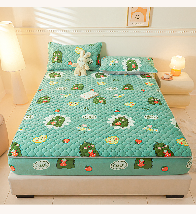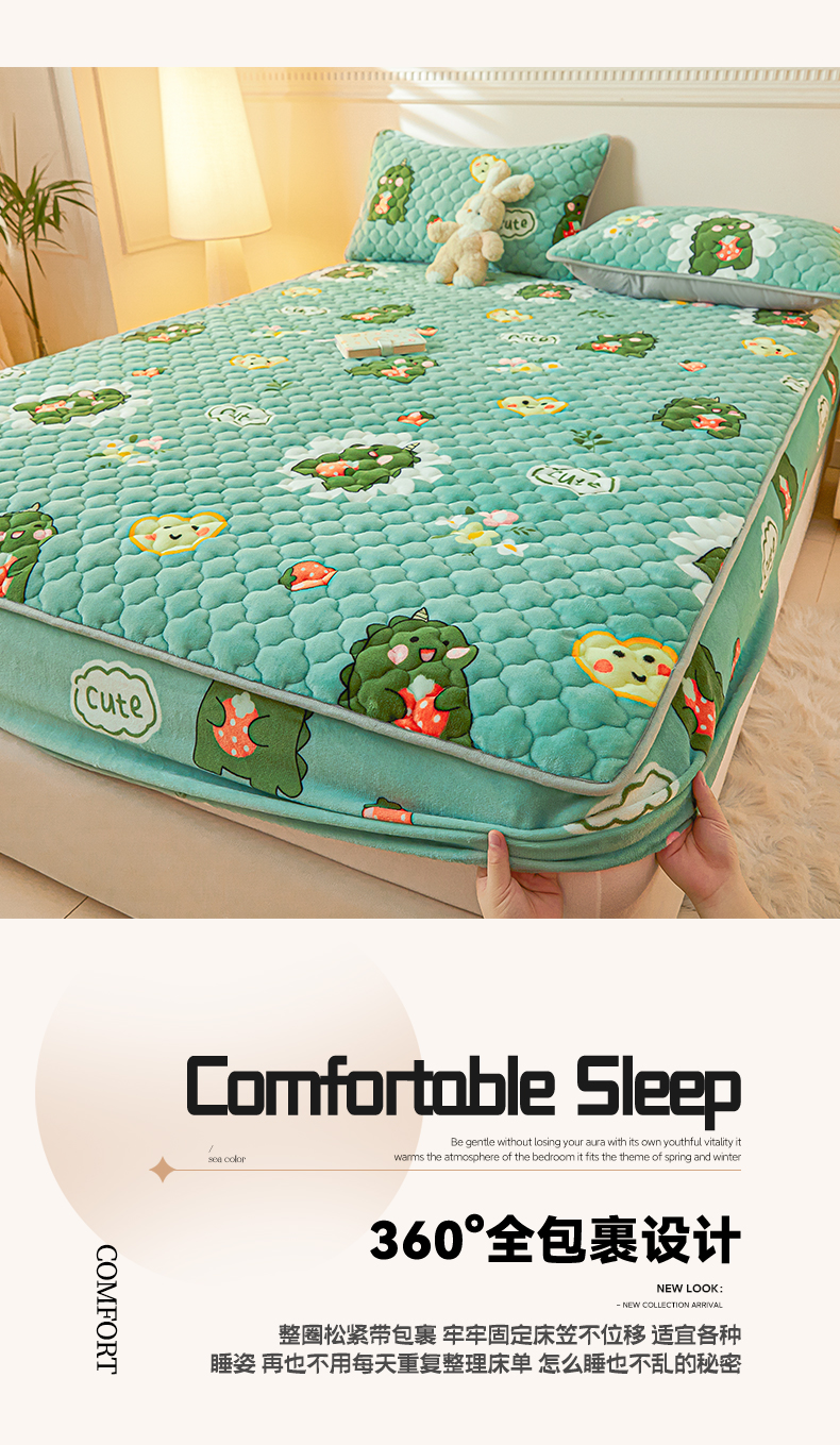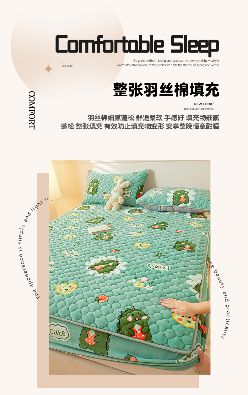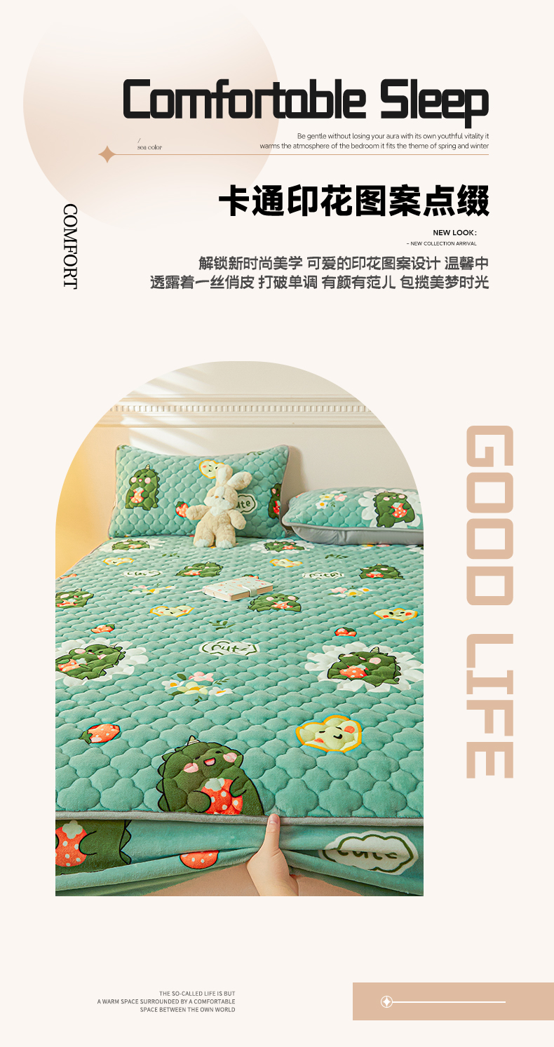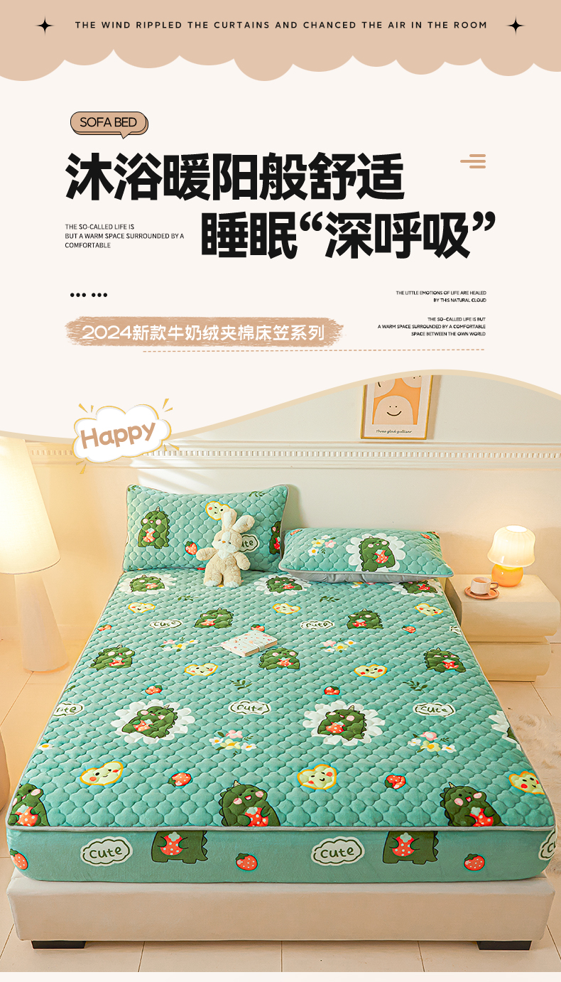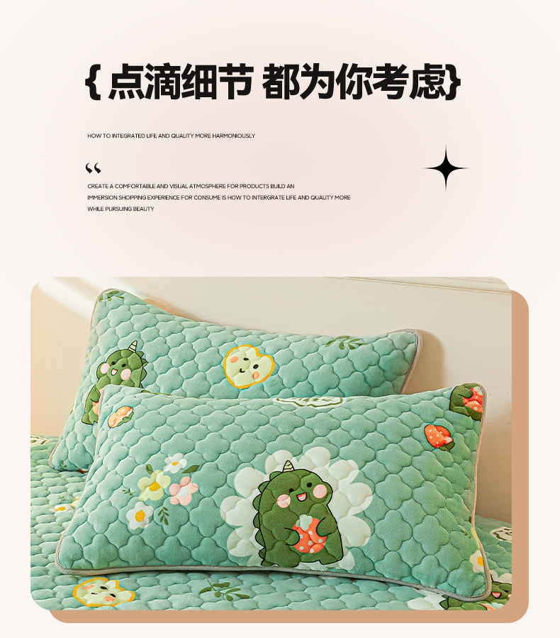 卡伦家纺 2025新款A类牛奶绒大豆纤维抗菌夹棉床笠 呆萌恐龙