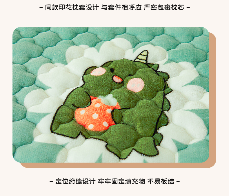 商品名称:卡伦家纺 2025新款A类牛奶绒大豆纤维抗菌夹棉床笠 呆萌恐龙