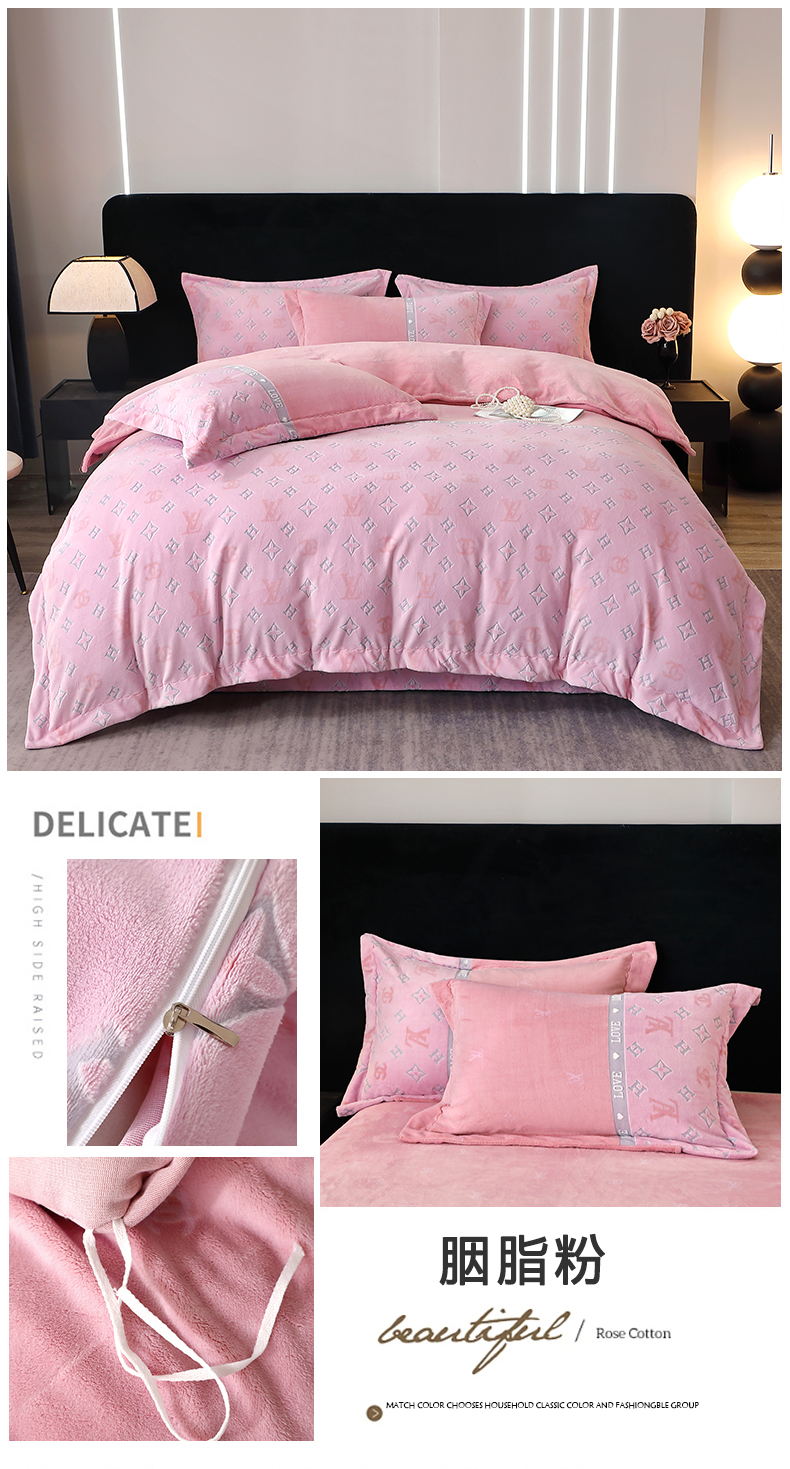 商品名称:席之家 2024新款A类平雕印花全消光260克雅丝绒四件套 胭脂粉