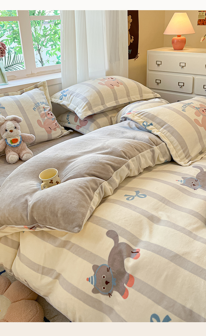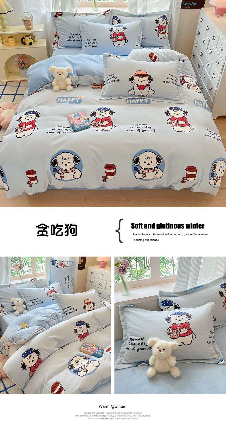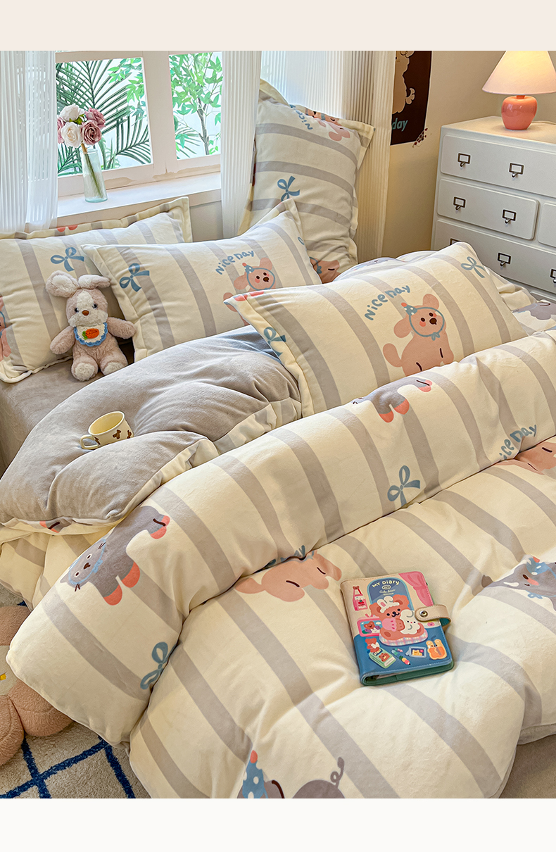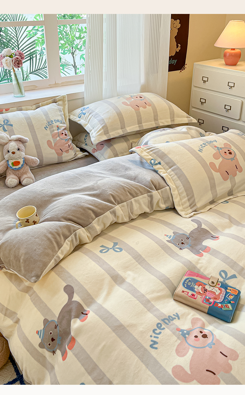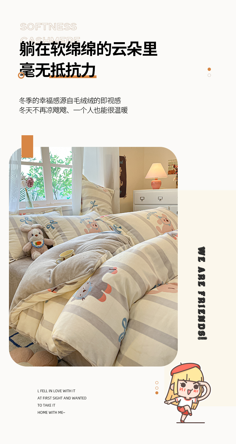当前位置: 91家纺网 > 商品网购 > 床品套件 > 四件套 > 牛奶绒四件套 > 寐居家纺 2024新款A类小清新牛奶绒印花四件套 萌萌乐园
