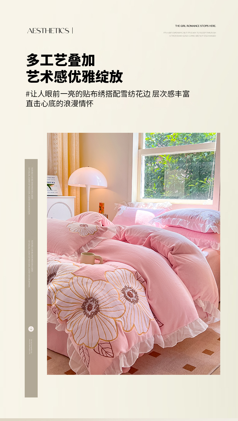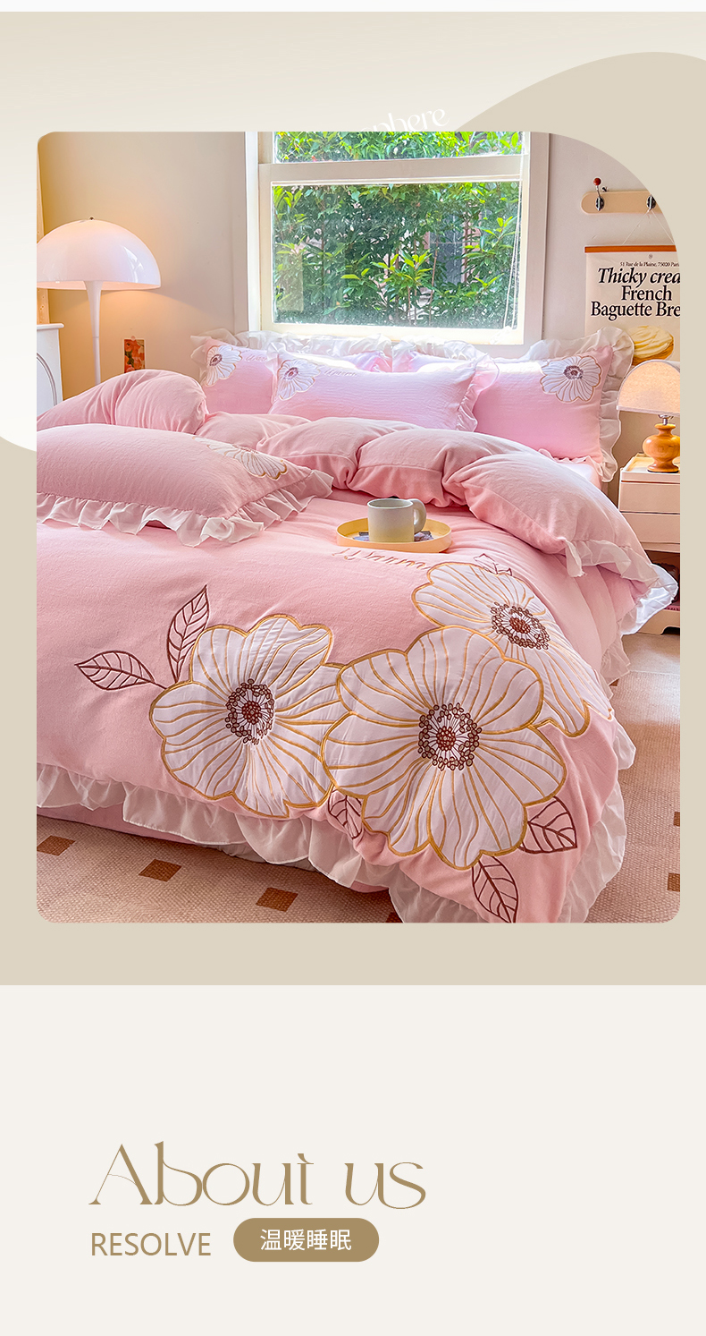 2024新款亲肤舒适牛奶绒重工艺四件套木子专版 半亩花田茶花粉