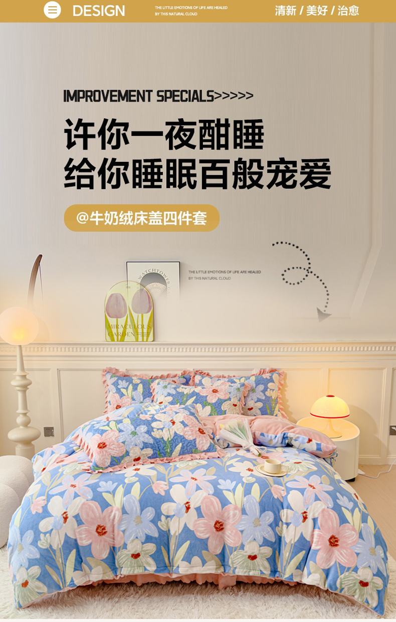 当前位置: 91家纺网 > 商品网购 > 床品套件 > 四件套 > 牛奶绒四件套 > 铠畅 2025新款加厚牛奶绒床盖四件套 繁花浪漫