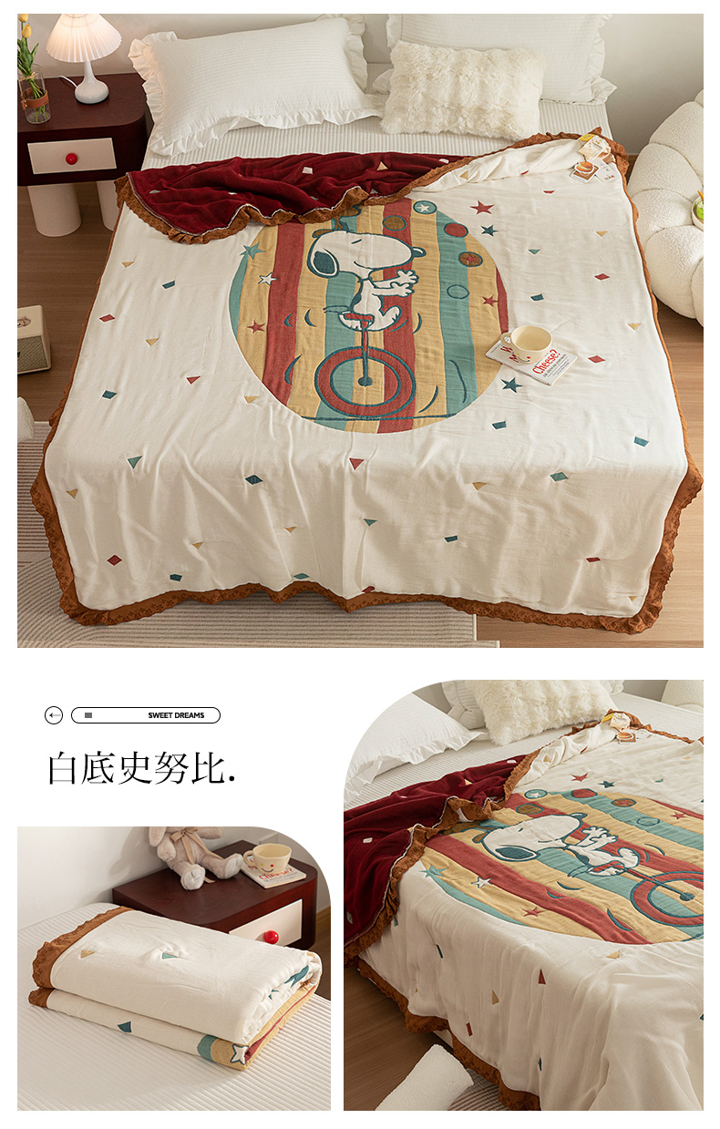 商品名称:乐家毛巾被 2024新款十层纱布泡芙被 白底史努比