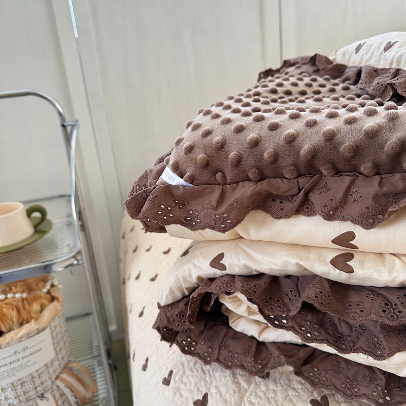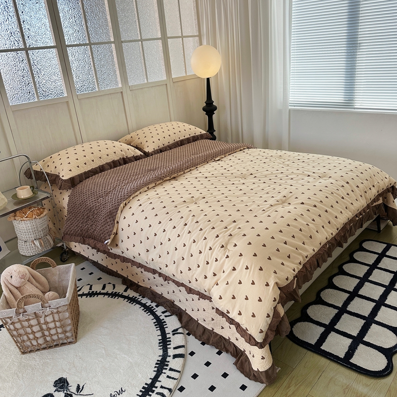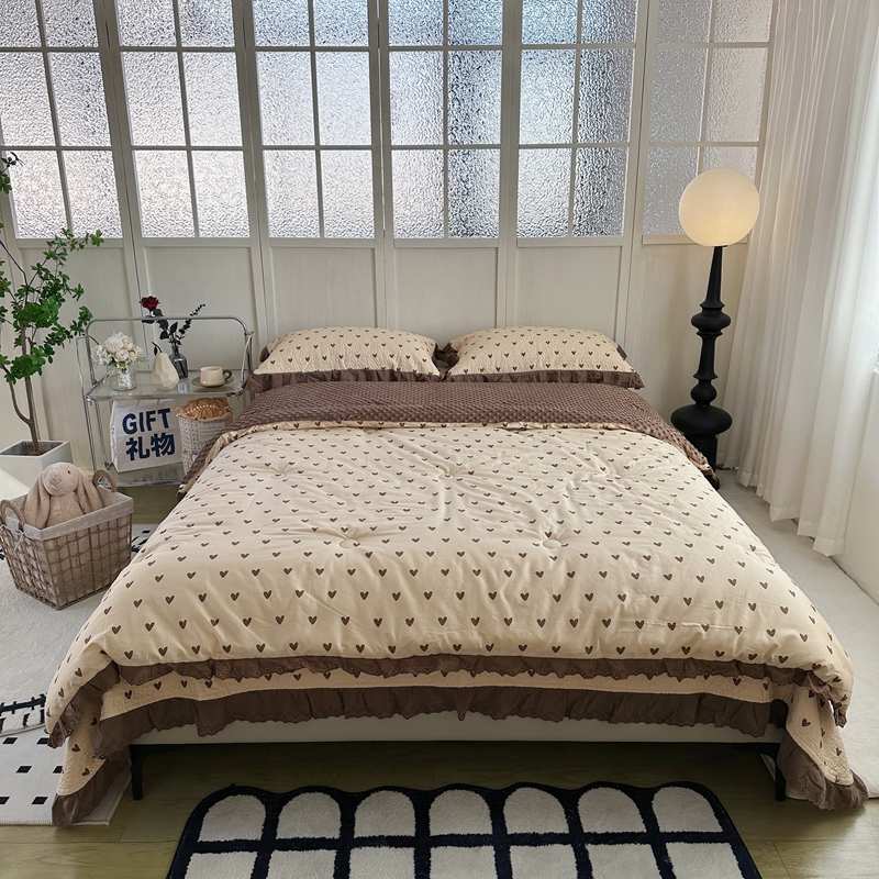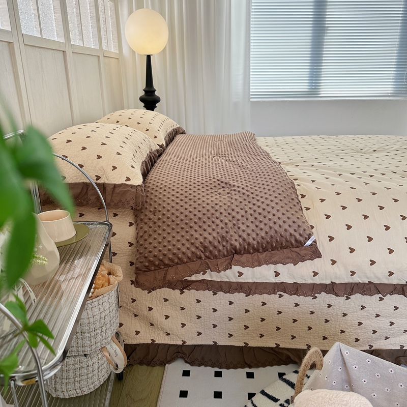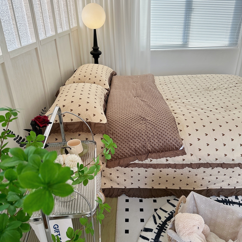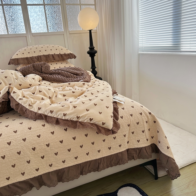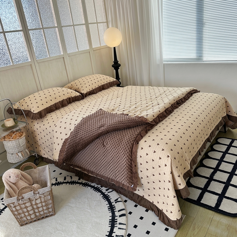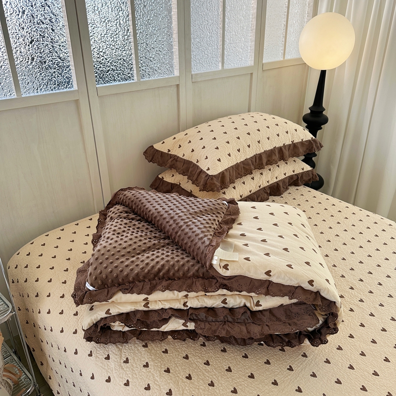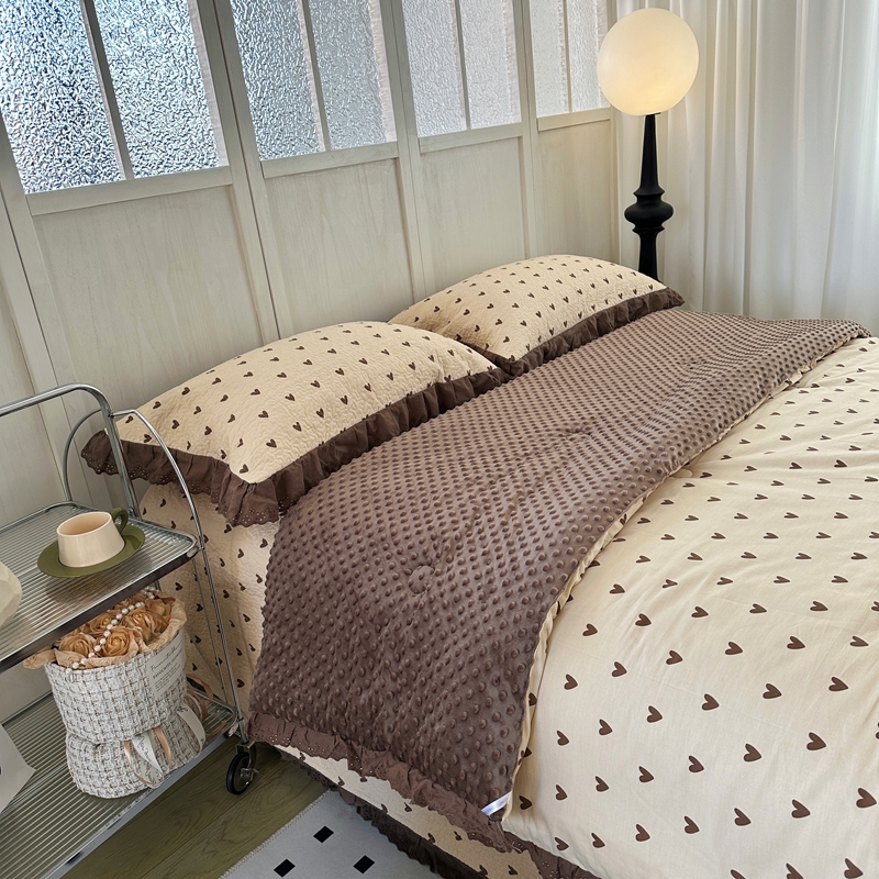 佰织鑫家居 2024新款秋冬全棉法式床盖款豆豆被四件套 爱心咖