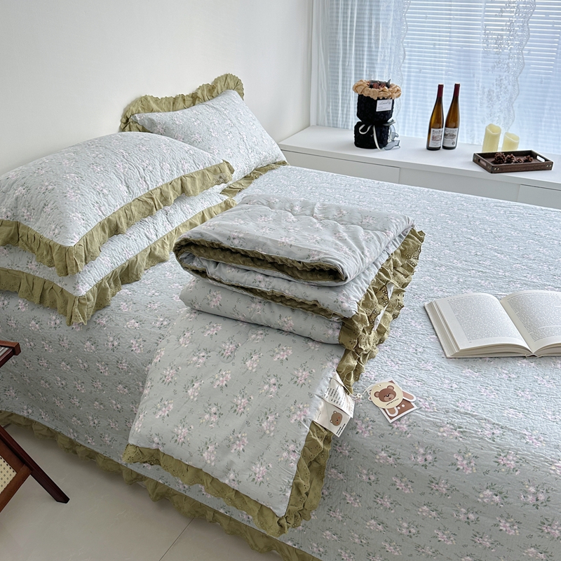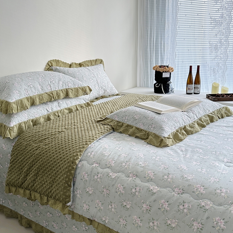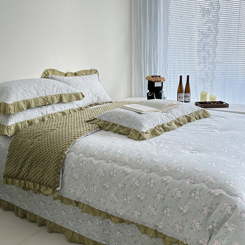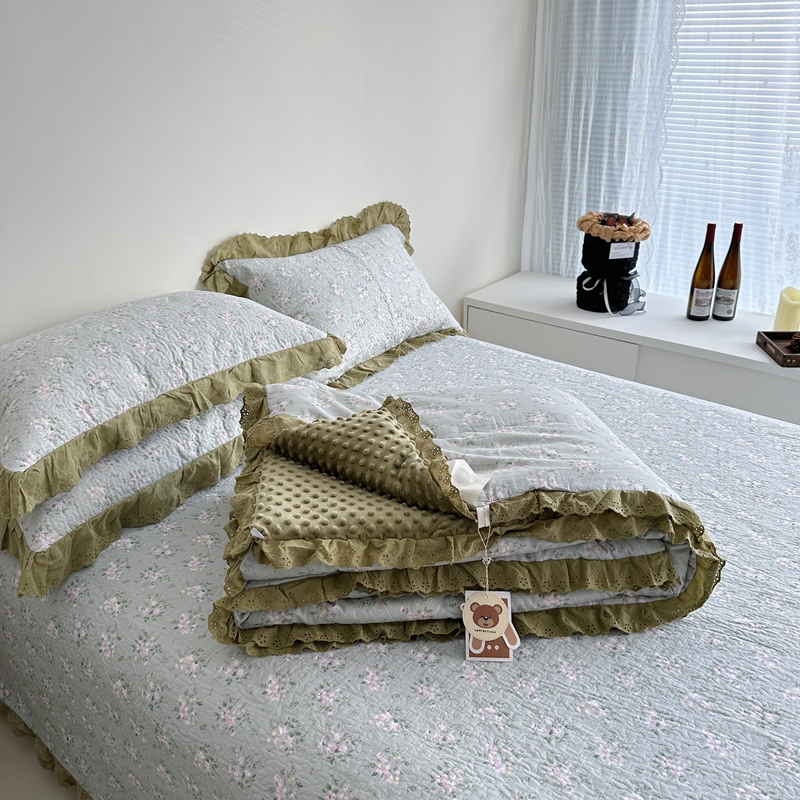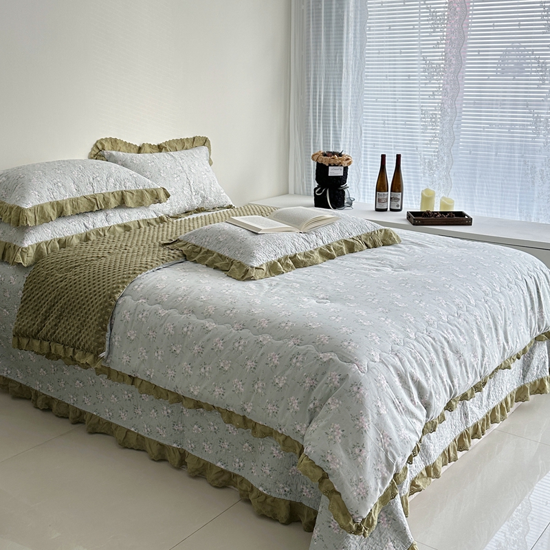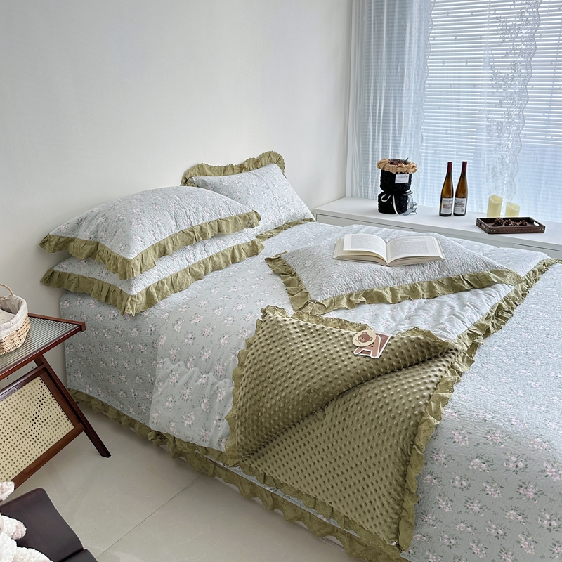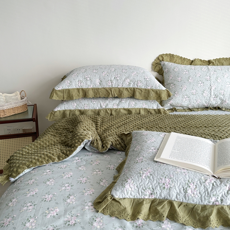 商品名称:佰织鑫家居 2024新款秋冬全棉法式床盖款豆豆被四件套 莫奈绿