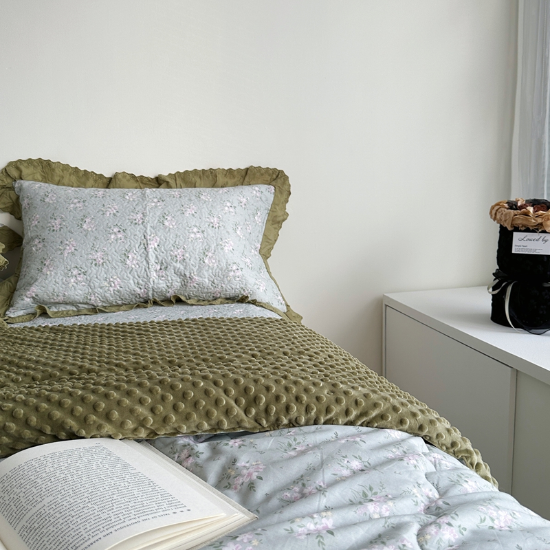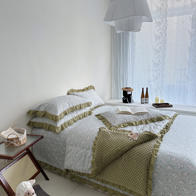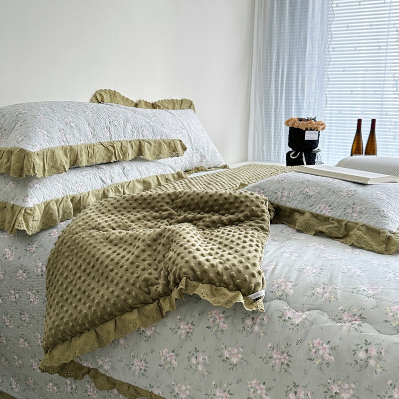 佰织鑫家居 2024新款秋冬全棉法式床盖款豆豆被四件套 莫奈绿