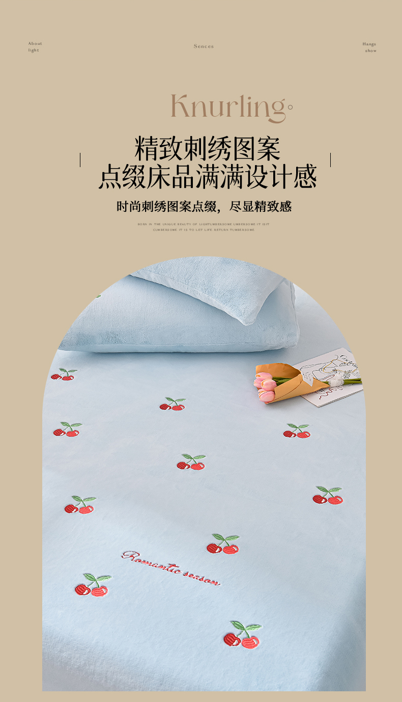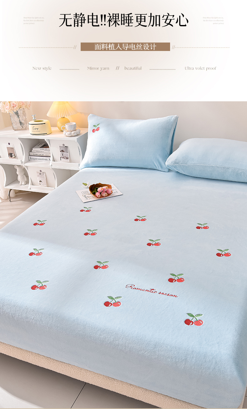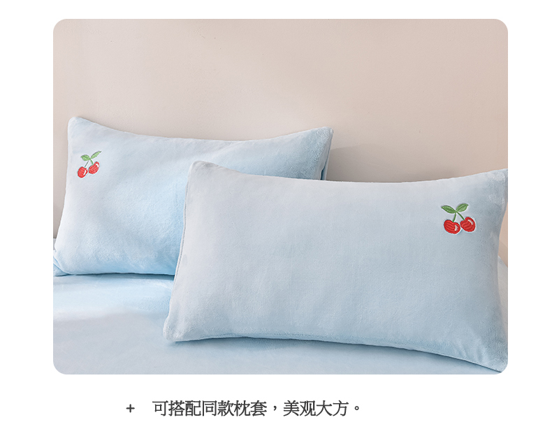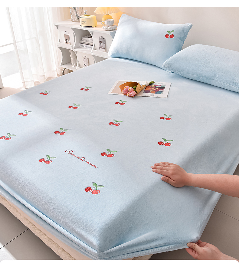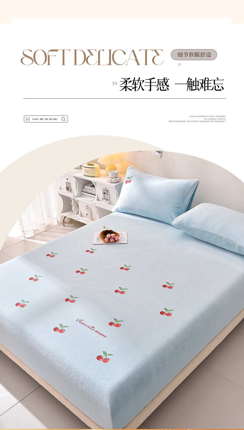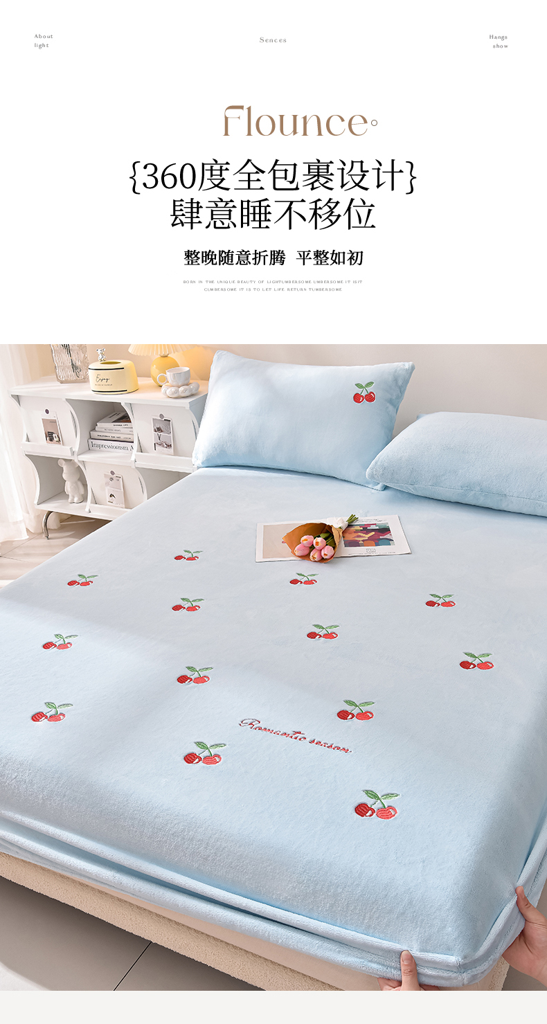 笙意家纺 2025新款A类牛奶绒花卉刺绣单床笠 樱桃-婴儿蓝