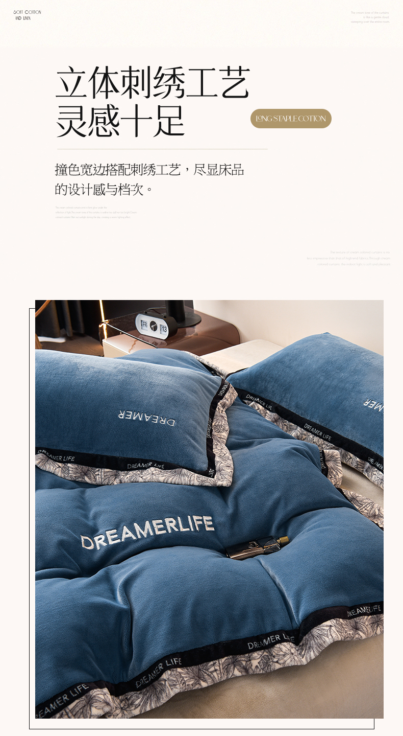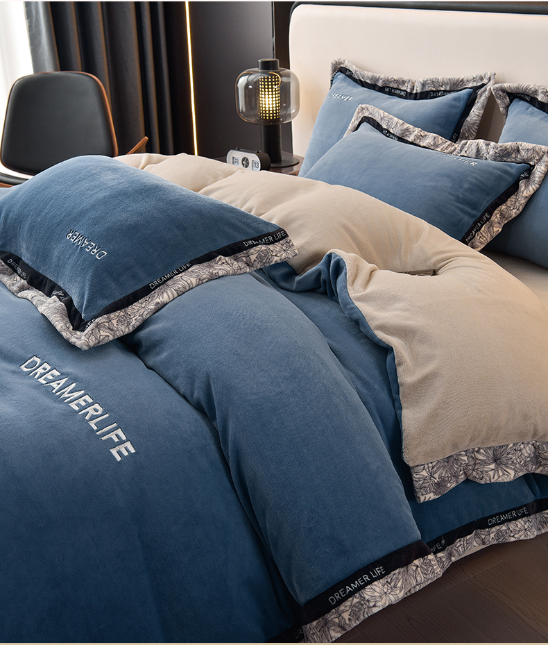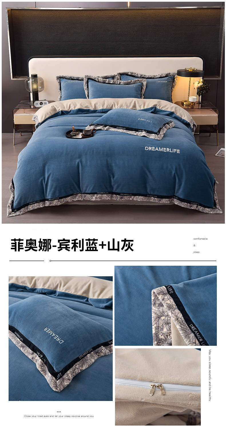 当前位置: 91家纺网 > 商品网购 > 床品套件 > 四件套 > 牛奶绒四件套 > 笙意家纺 2025新款牛奶绒宽边刺绣四件套-菲奥娜系列 菲奥娜-宾利蓝+山灰