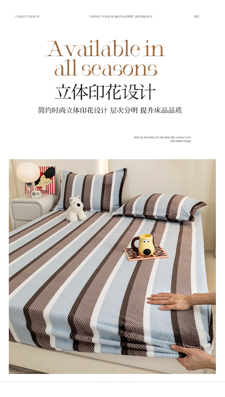 2024新款立体菠萝格印花保暖牛奶绒系列单床笠 自由蓝