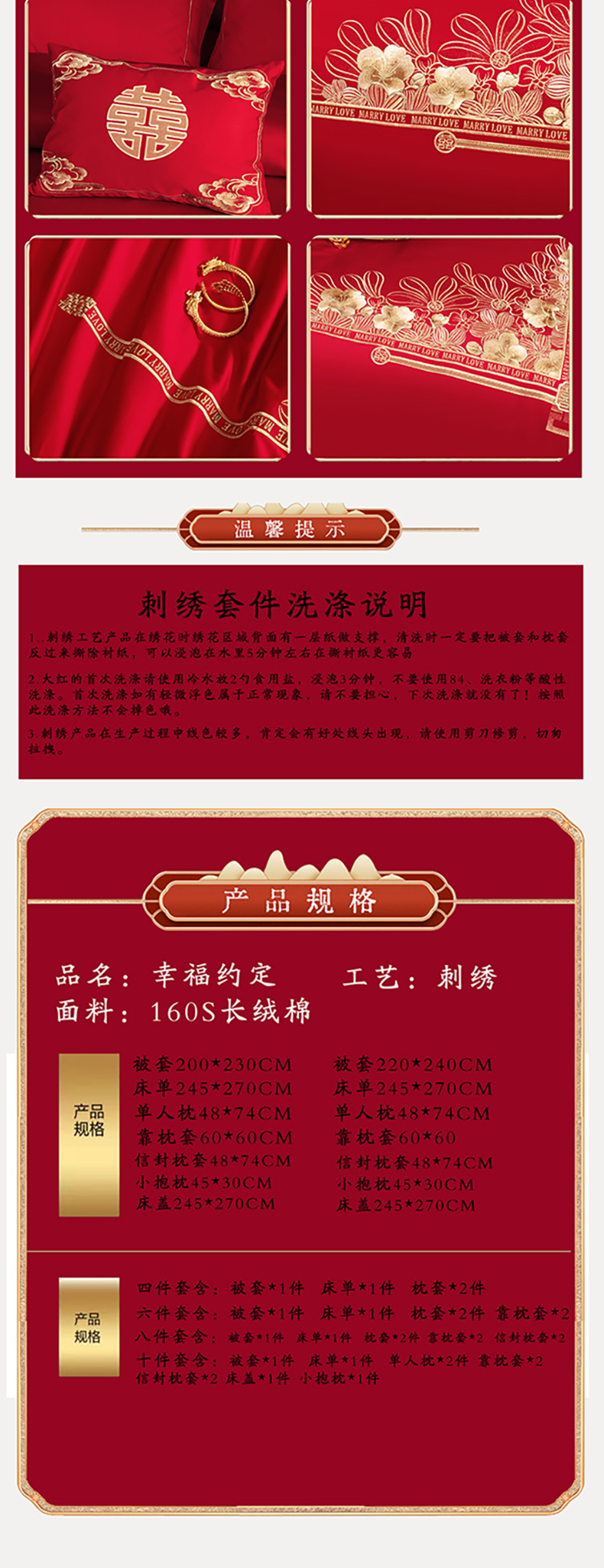 当前位置: 91家纺网 > 商品网购 > 床品套件 > 四件套 > 婚庆四件套 > 2024新款100S长绒棉提花婚庆轻奢简约四件套多件套 幸福约定