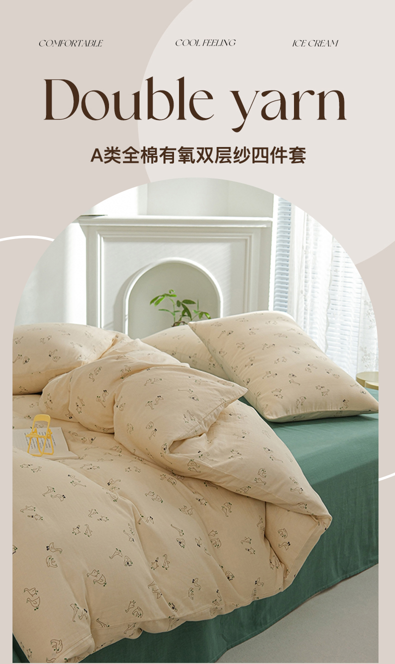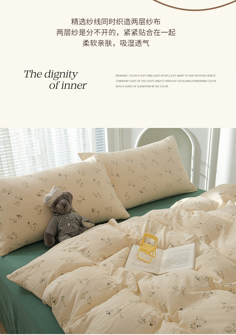 当前位置: 91家纺网 > 商品网购 > 床品套件 > 四件套 > 双层纱四件套 > 麦伦家居 2024秋冬新款A类全棉有氧双层纱四件套 大鹅