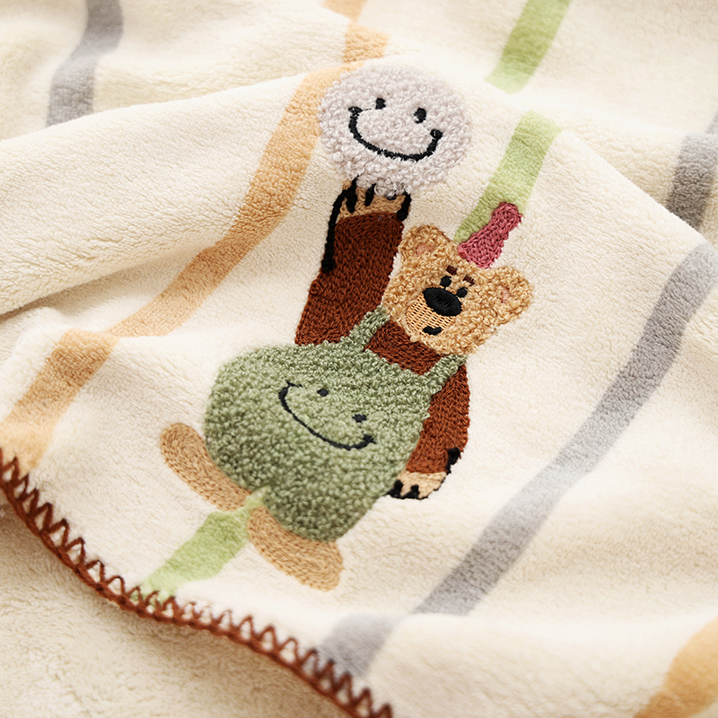 当前位置: 91家纺网 > 商品网购 > 居家日用 > 毛巾/浴巾/浴袍 > 浴巾 > 朴尔家纺-毛巾被 2024新款毛巾绣勾边小格快乐鸭AB版珊瑚绒速吸速干毛巾浴巾 背带熊-米白浴巾