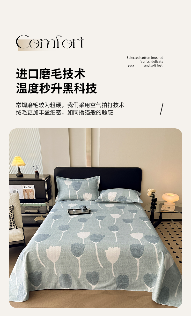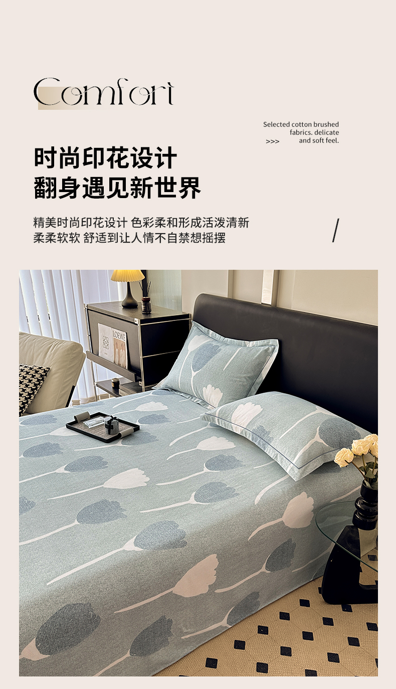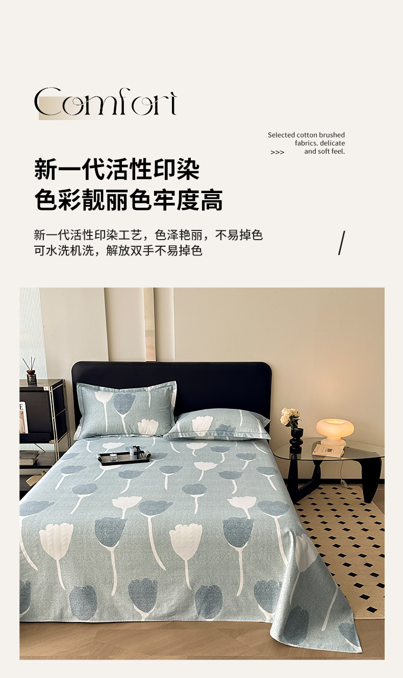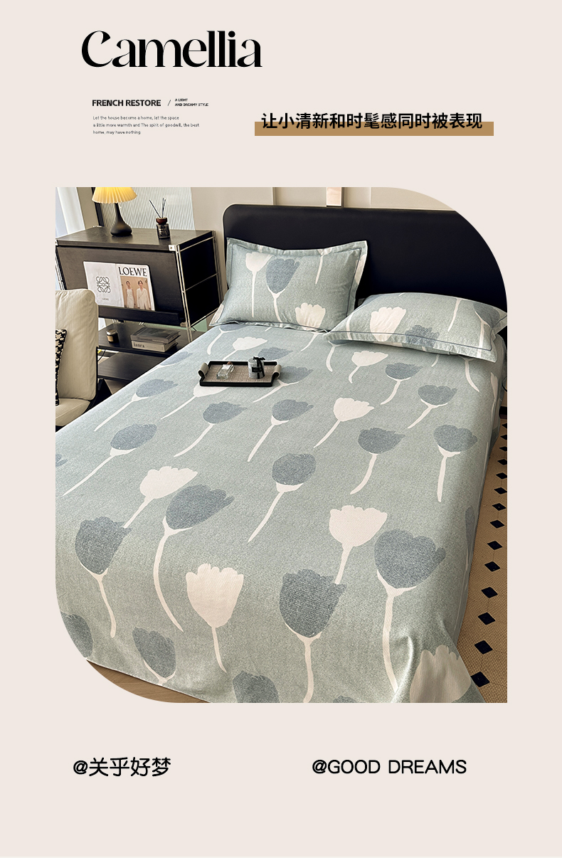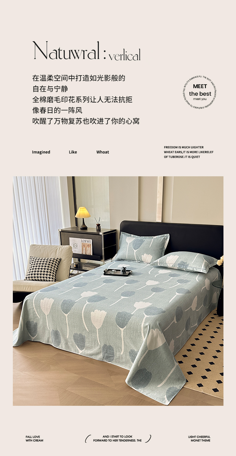商品名称:大柏树 2025新款A类全棉磨毛印花单床单 人间茶白