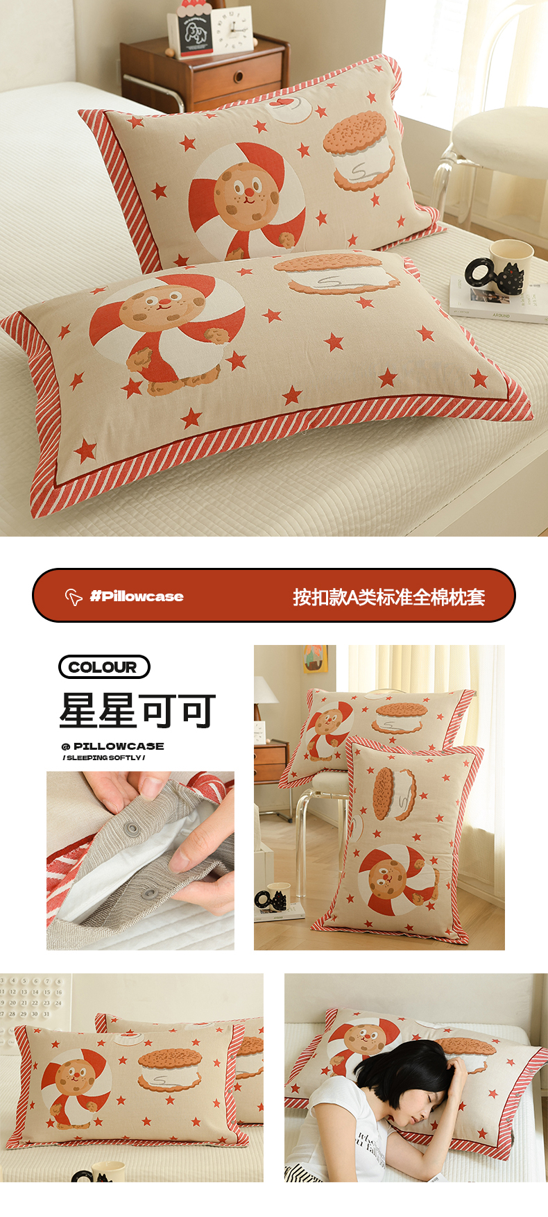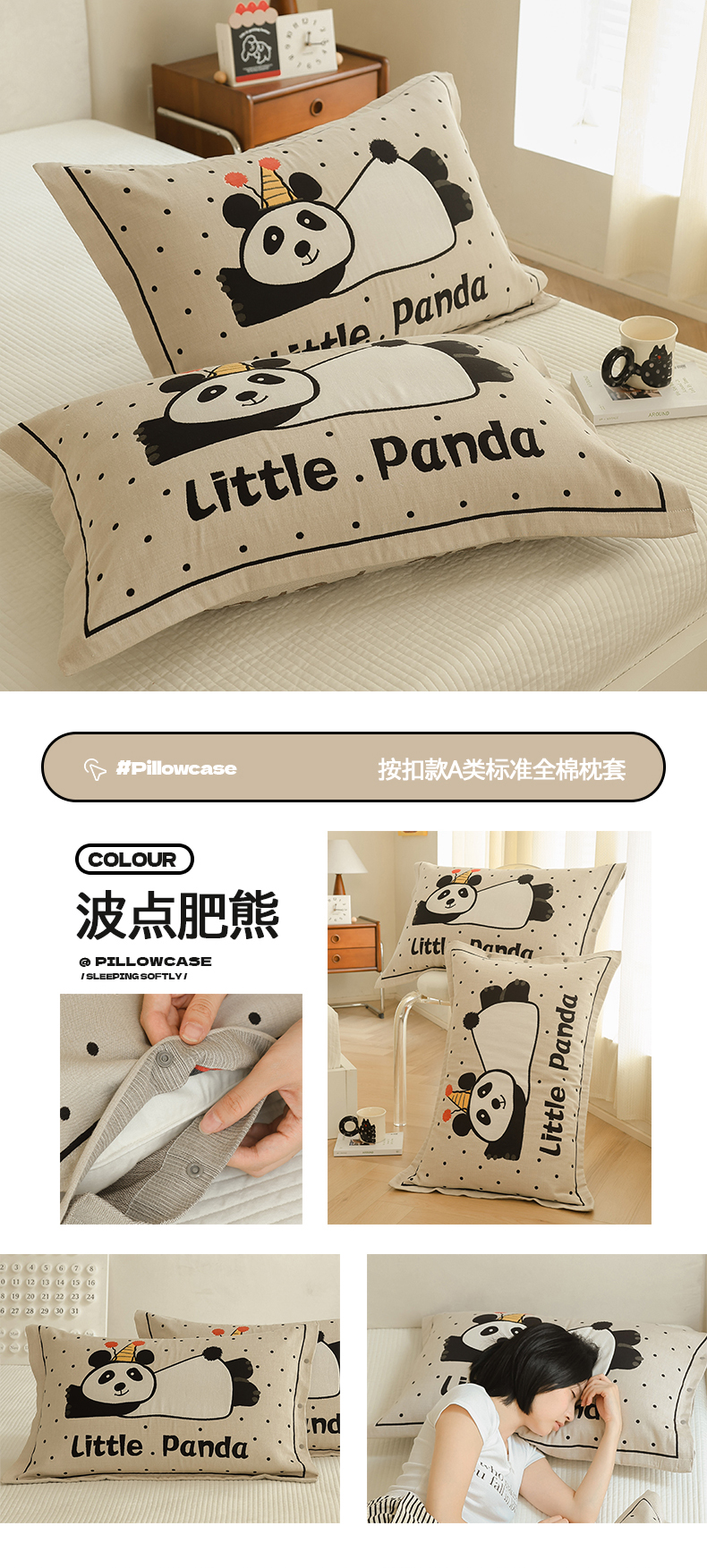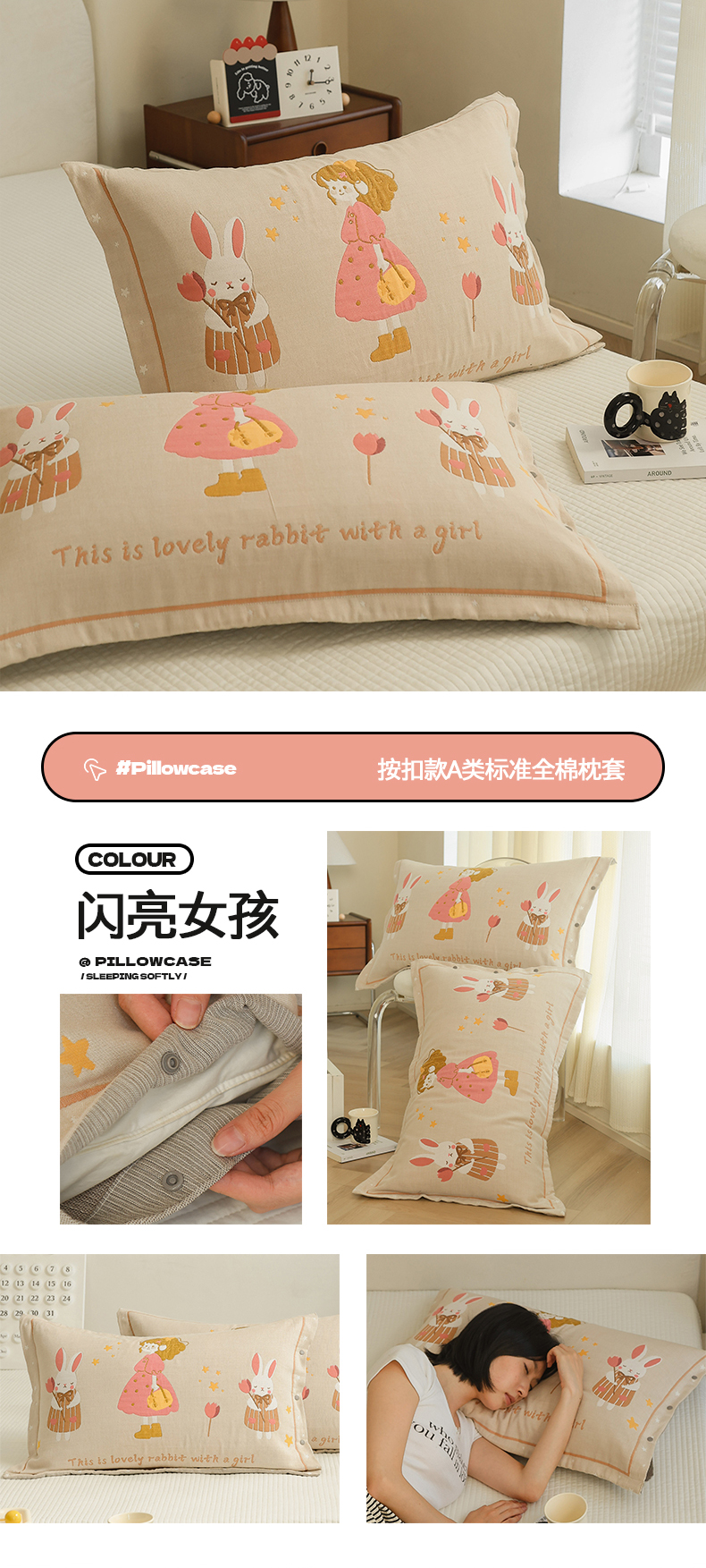 (总)2024新款全棉四层纱布枕套一对装纽扣款枕套