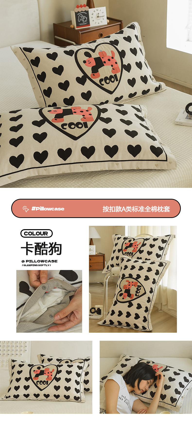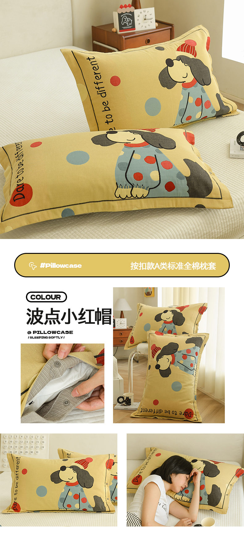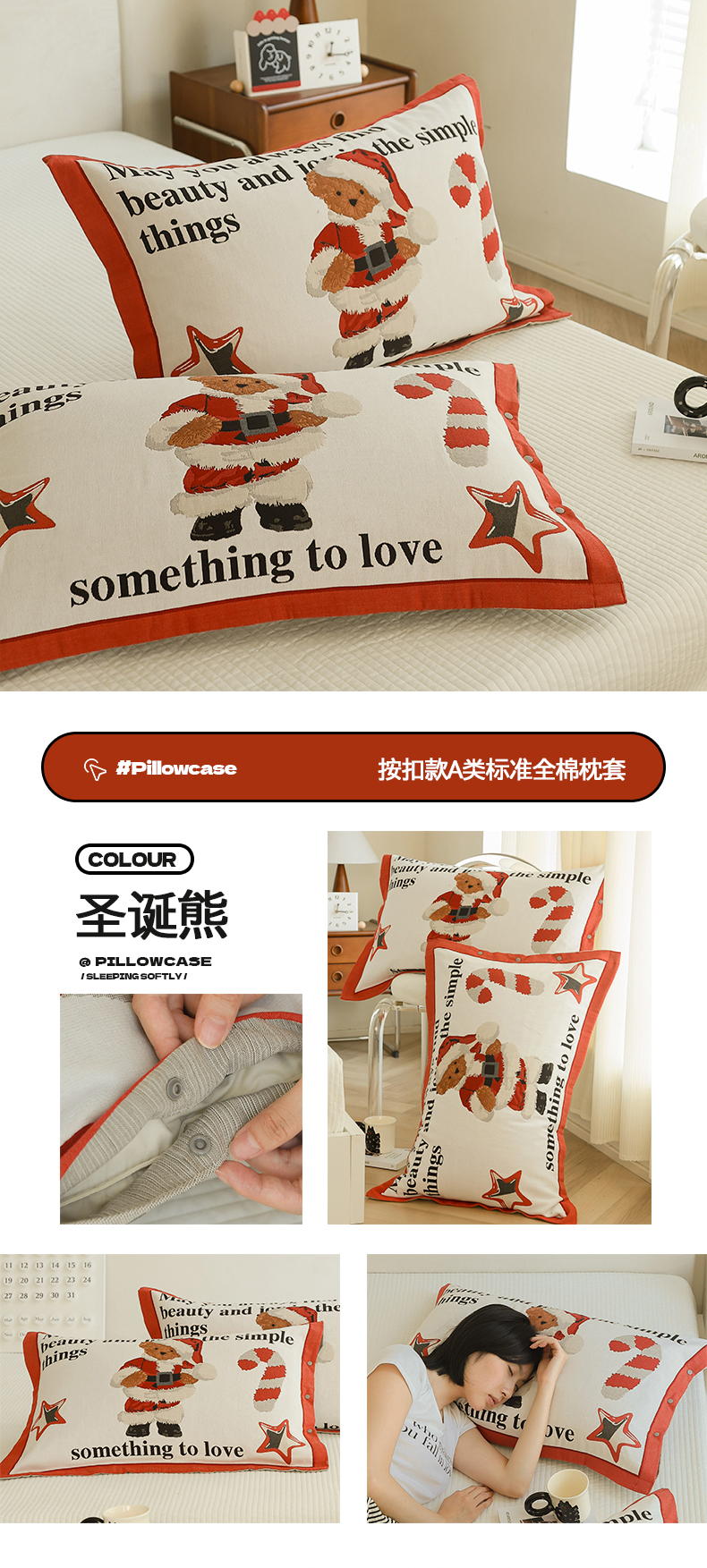 (总)2024新款全棉四层纱布枕套一对装纽扣款枕套