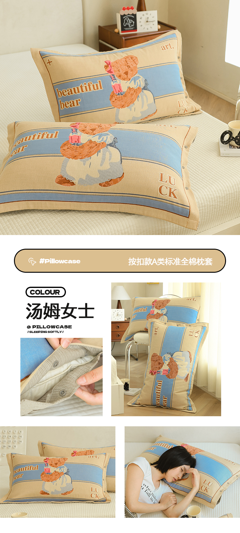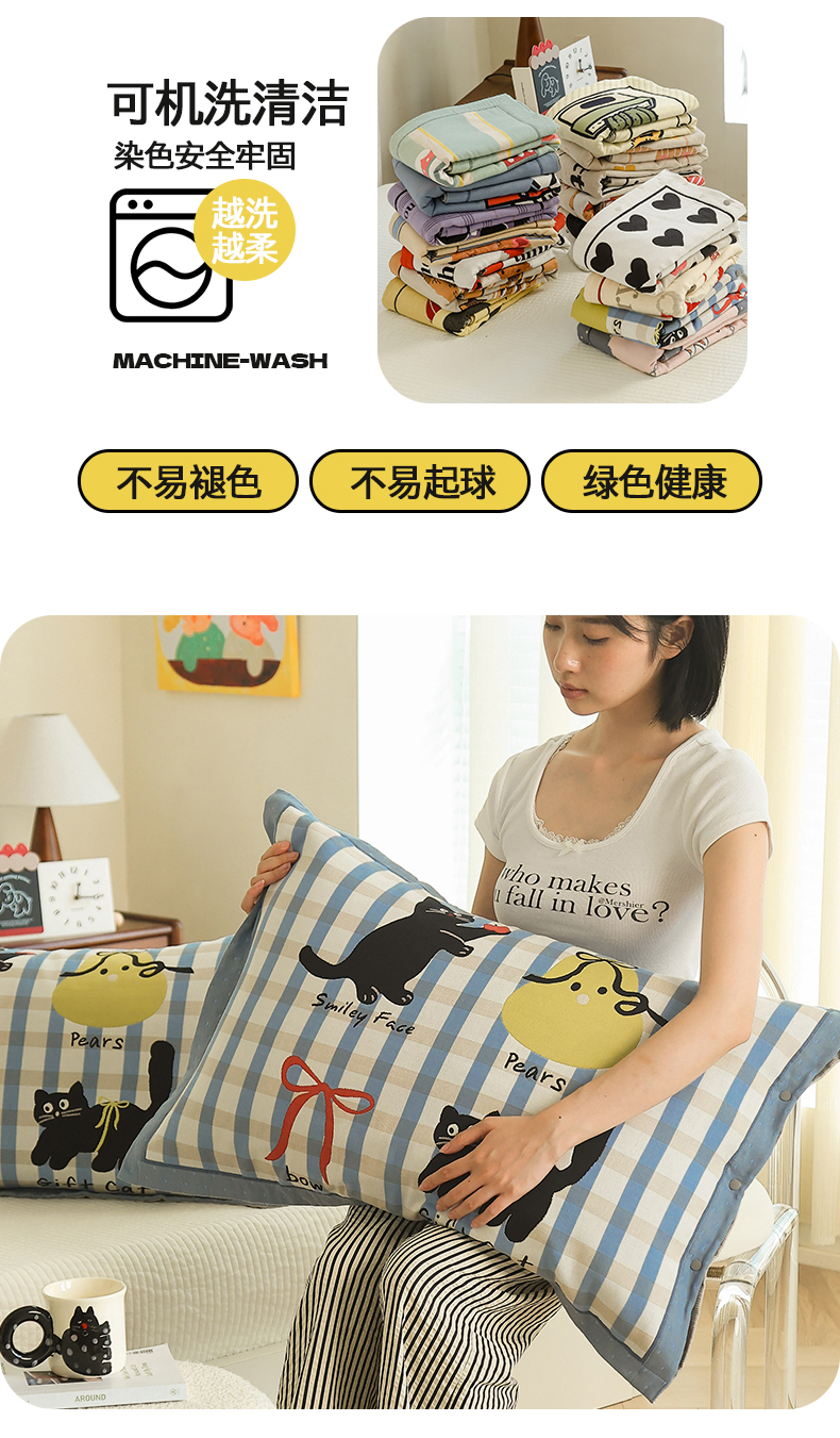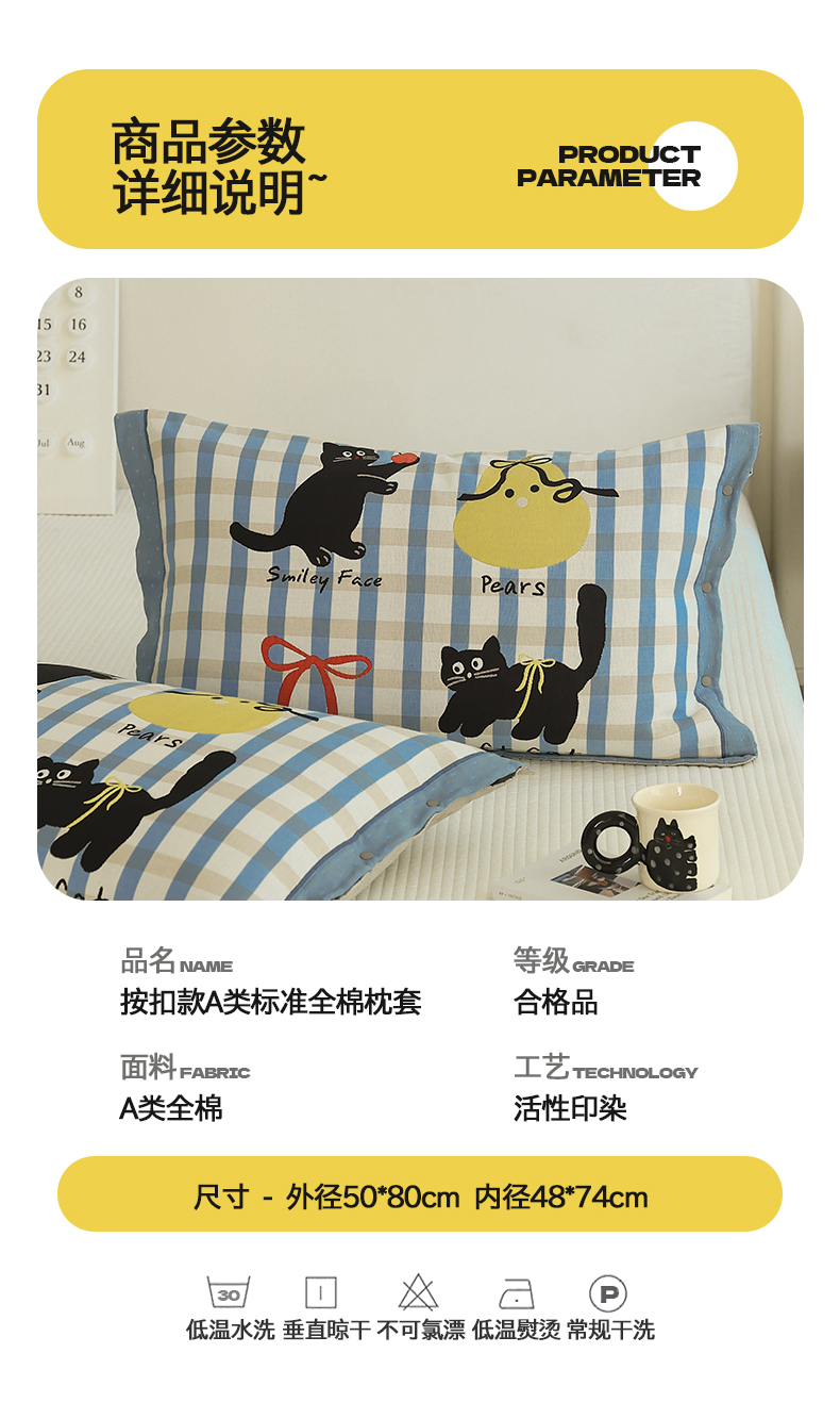 商品名称:(总)2024新款全棉四层纱布枕套一对装纽扣款枕套