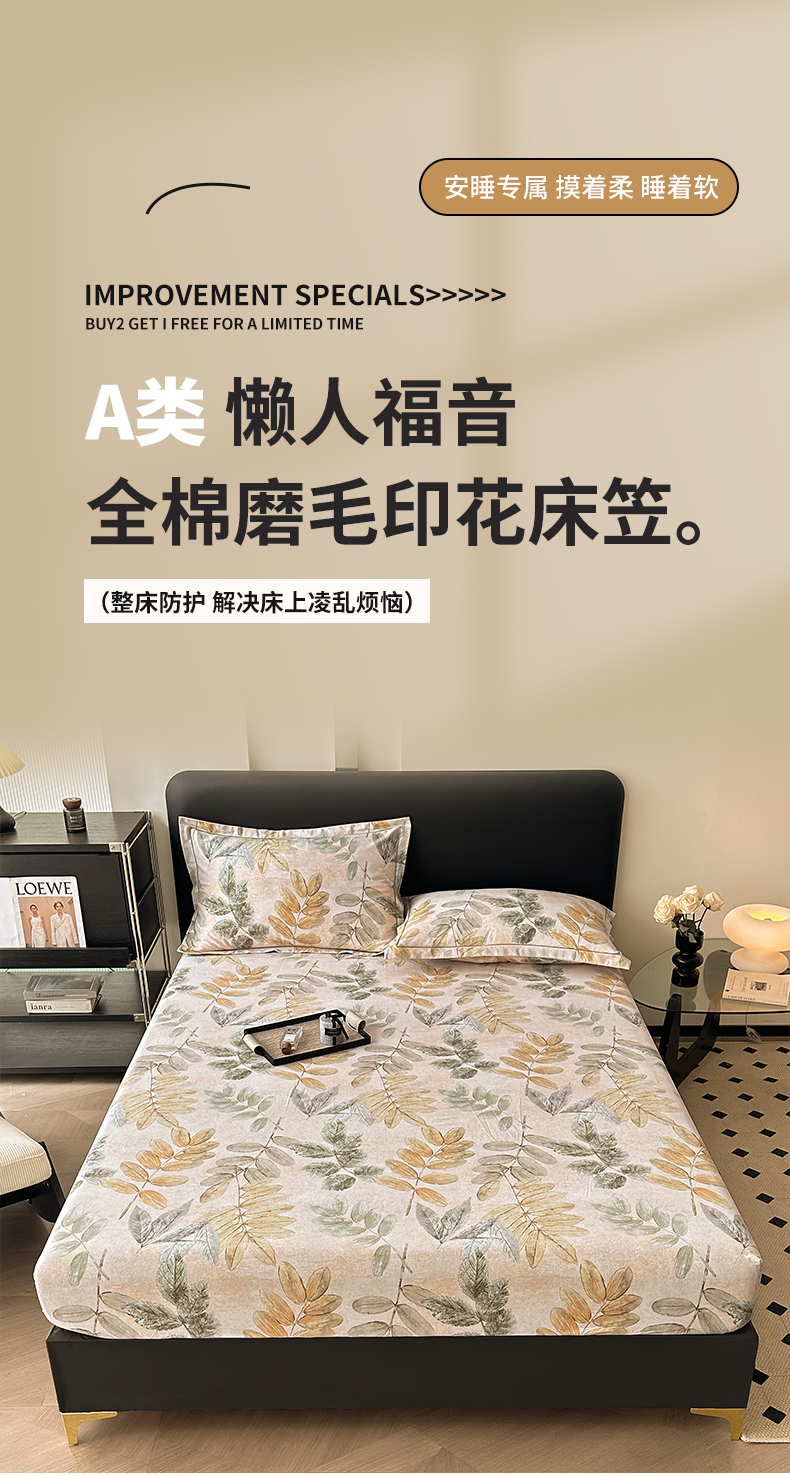 商品名称:大柏树 2025新款A类全棉磨毛印花单床笠 春派