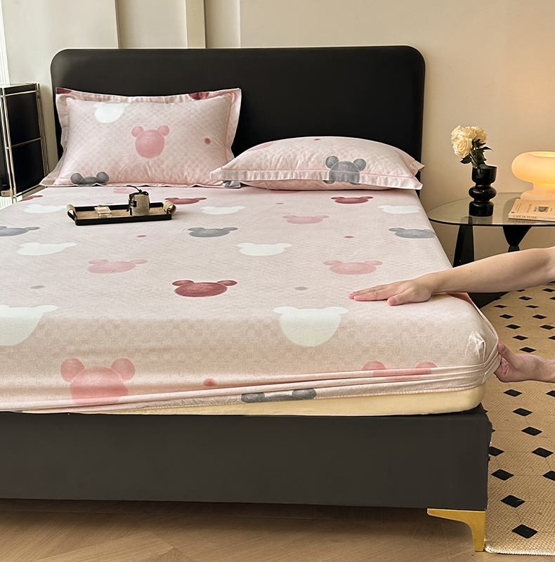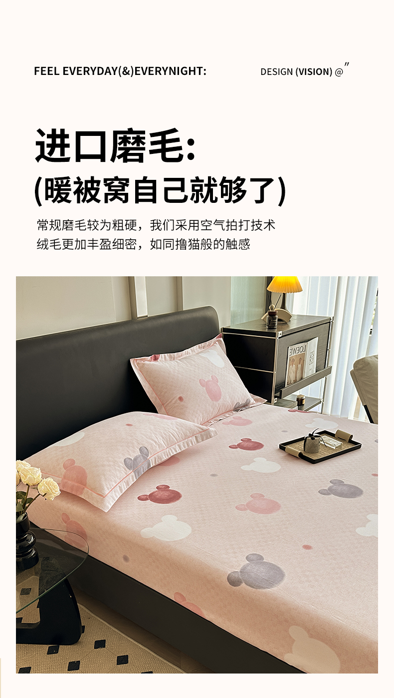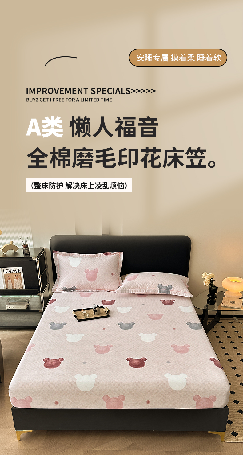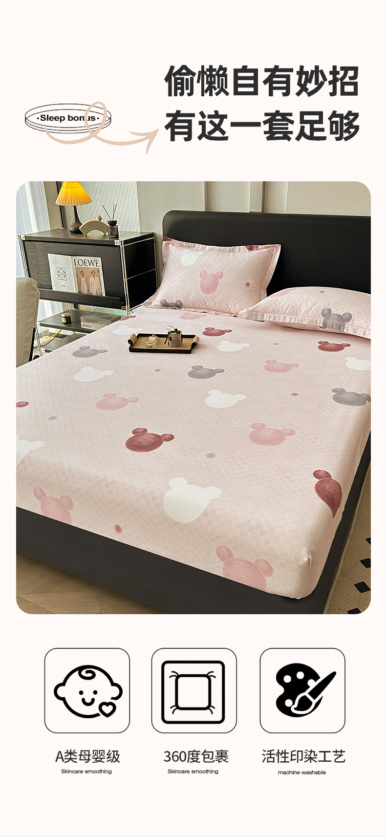 商品名称:大柏树 2025新款A类全棉磨毛印花单床笠 妙妙屋粉