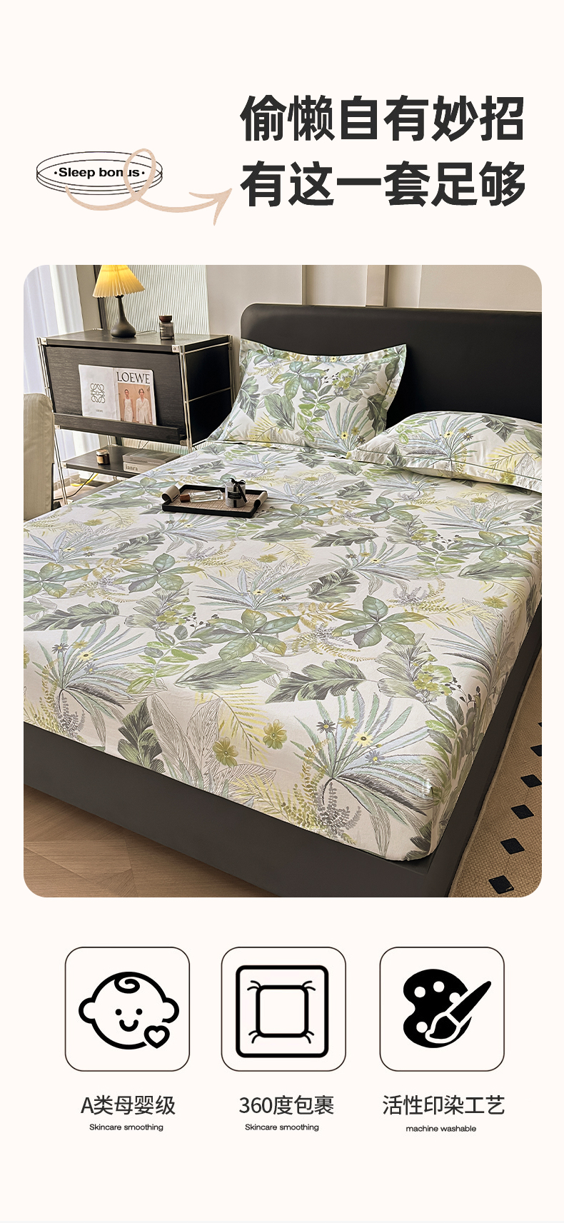 商品名称:大柏树 2025新款A类全棉磨毛印花单床笠 月光森林