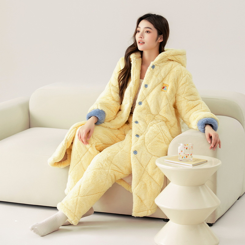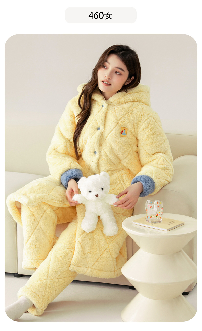 商品名称:(总)洛兰沙家居馆 2024新款秋冬季三层夹棉加厚加绒睡衣女士法兰绒套装珊瑚绒家居服