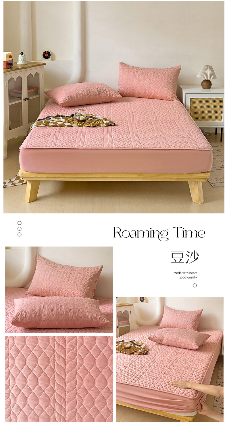 商品名称:雪夫人 2024新款全棉斜纹13372纯棉夹棉加厚床笠 豆沙