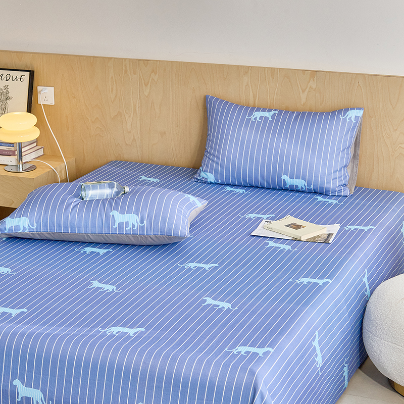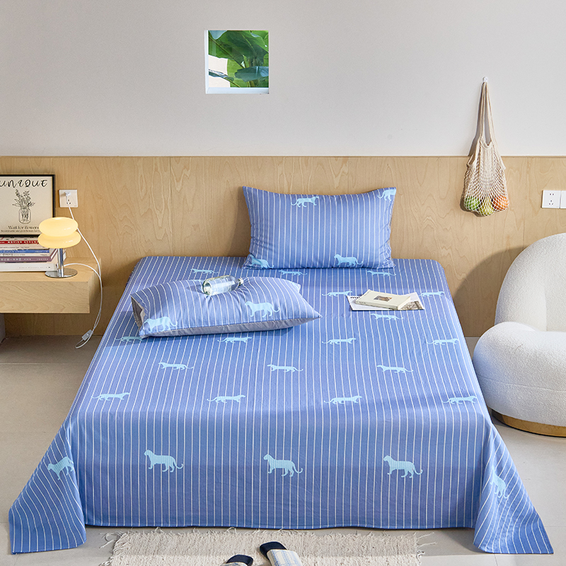 8小时家纺 2024新款40s双层纱单品四件套系列-床单 蓝色条纹豹子