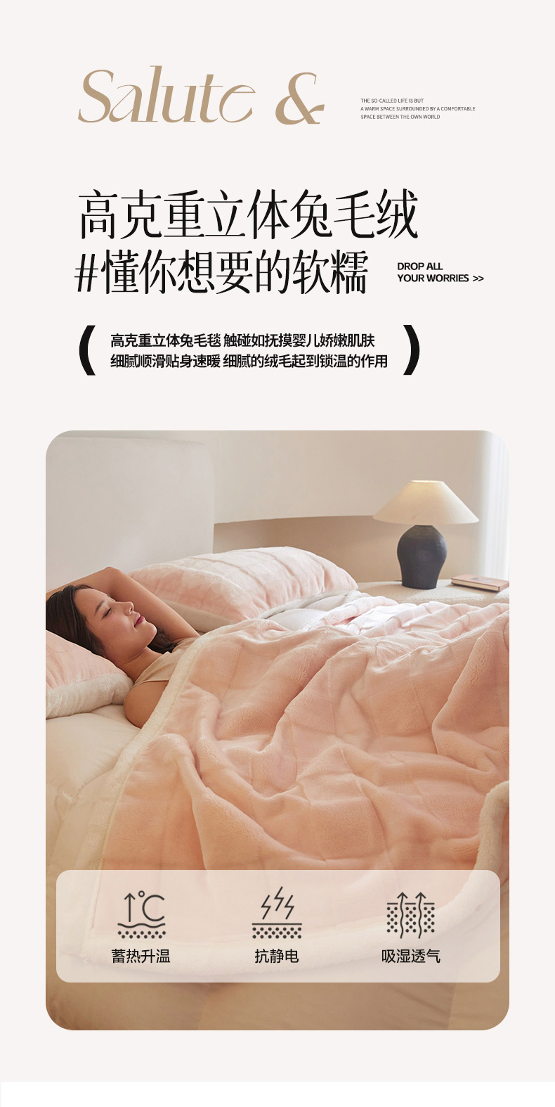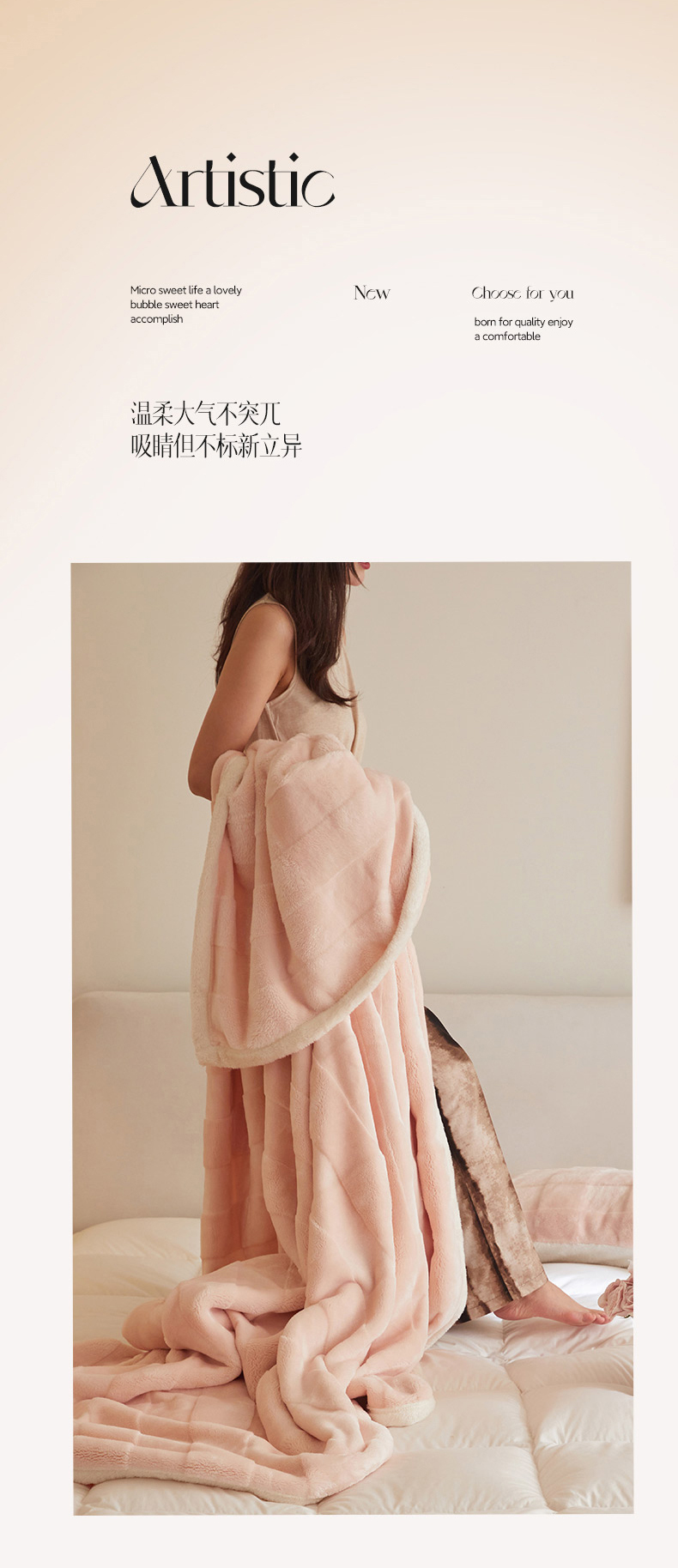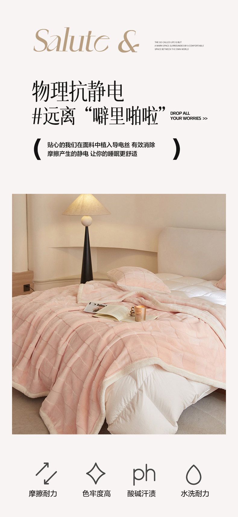 (总)铭动 2024新款雕花绒保暖毯-悠若毛毯,粉,卡其,蓝,绿
