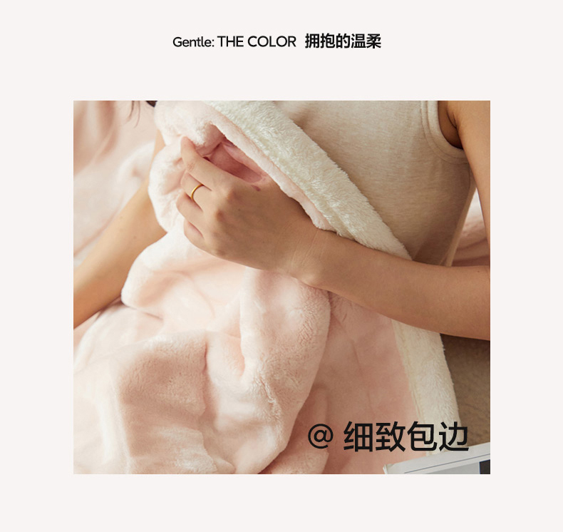 (总)铭动家纺 2024新款牛奶绒拼接款纯色保暖毯,粉色,灰,卡其,蓝灰,米白,天蓝