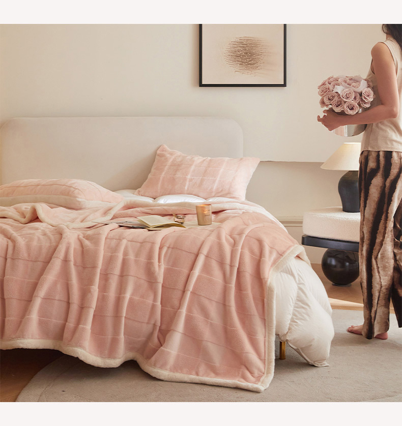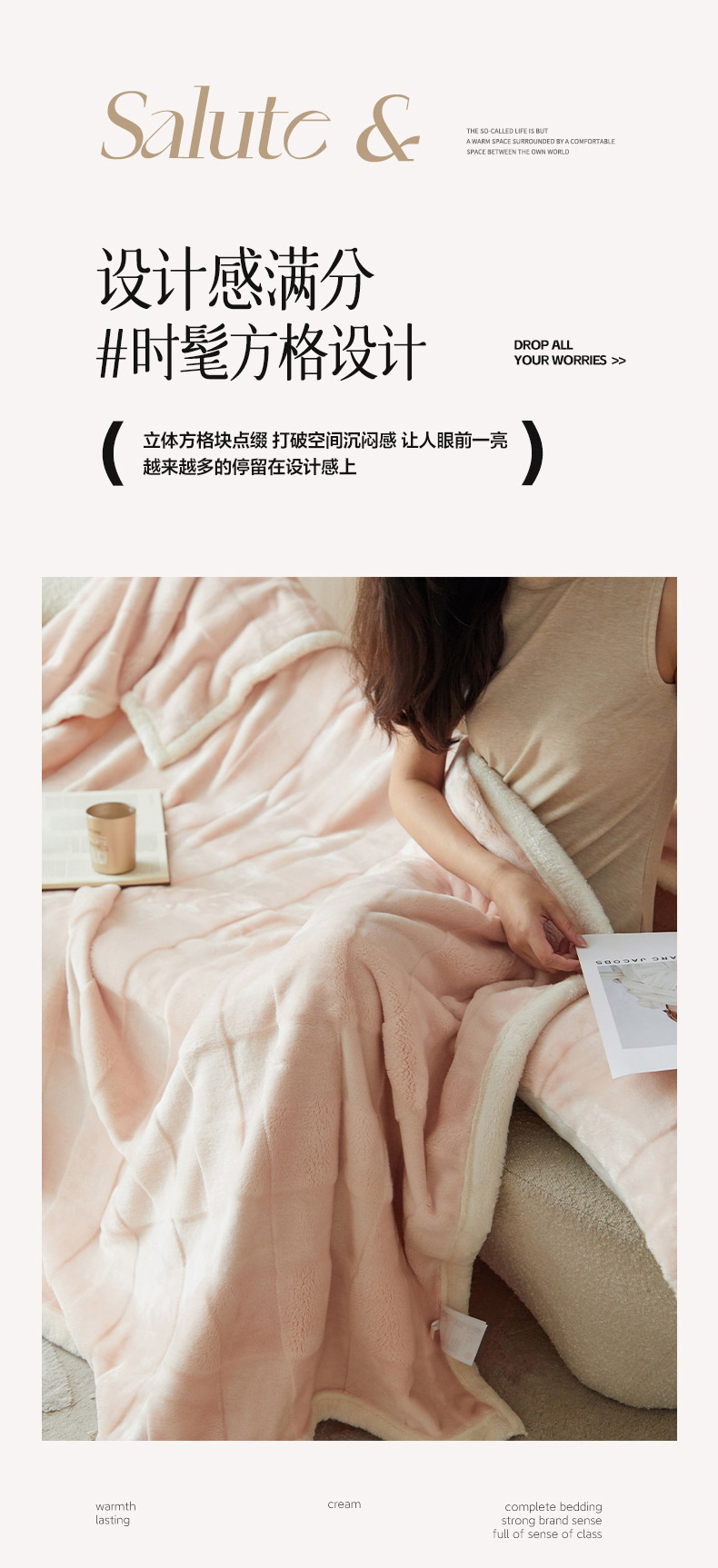 商品名称:铭动家纺 2024新款方格系列毯子 方格粉
