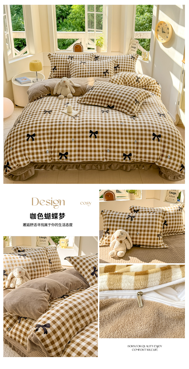 商品名称:尚美 2024新款高克重印花花边牛奶绒床盖四件套 咖色蝴蝶梦