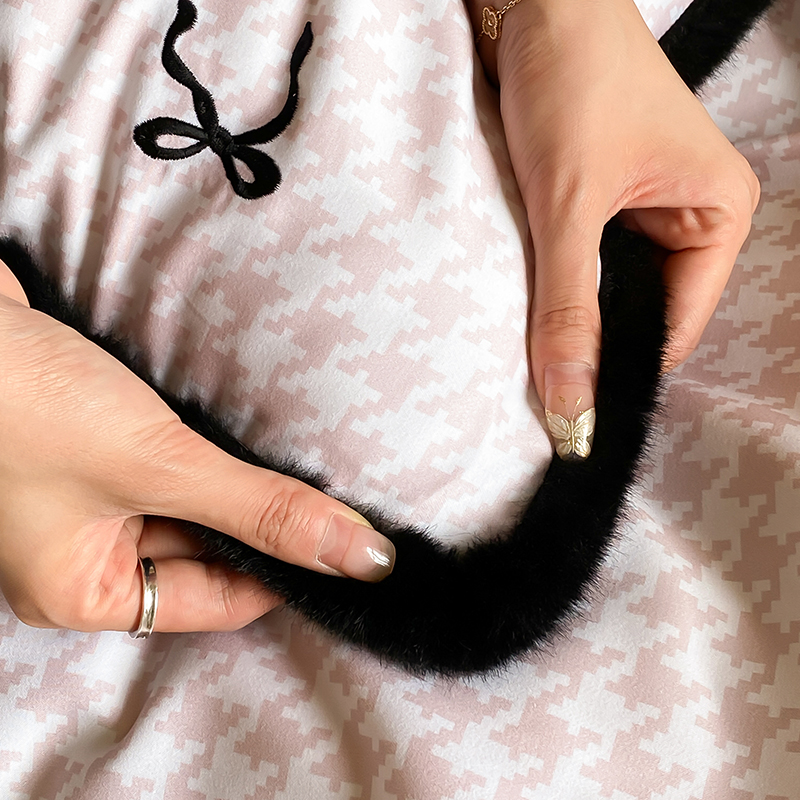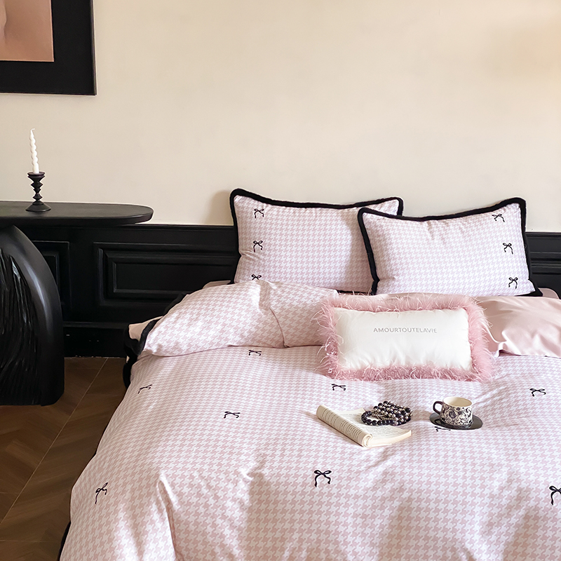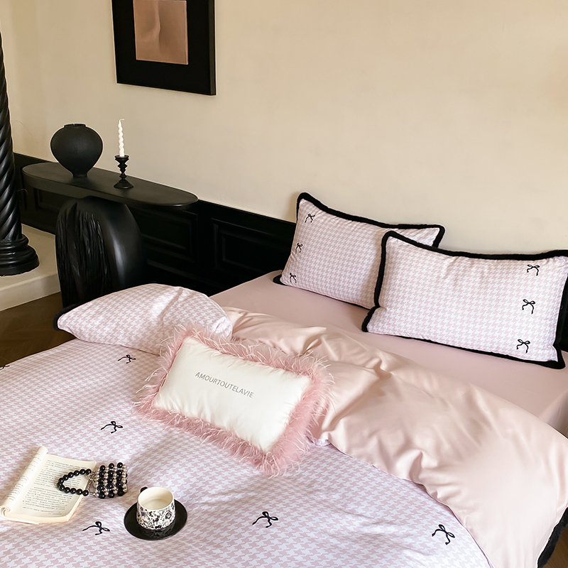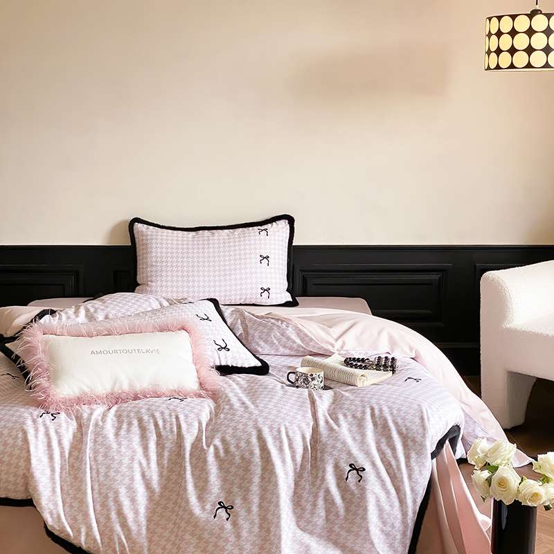 商品名称:初拾 2024新款100s澳棉磨毛刺绣四件套-蝴蝶结少女 蝴蝶结少女-桃粉