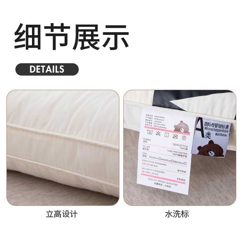 当前位置: 91家纺网 > 商品网购 > 枕头/枕芯/保健枕/颈椎枕 > 普通枕芯 > 佳尚枕芯 2025新款枕芯 A类无荧光全棉A+熊儿童酒店低枕头枕芯 全棉小熊学生枕 40x60cm/只